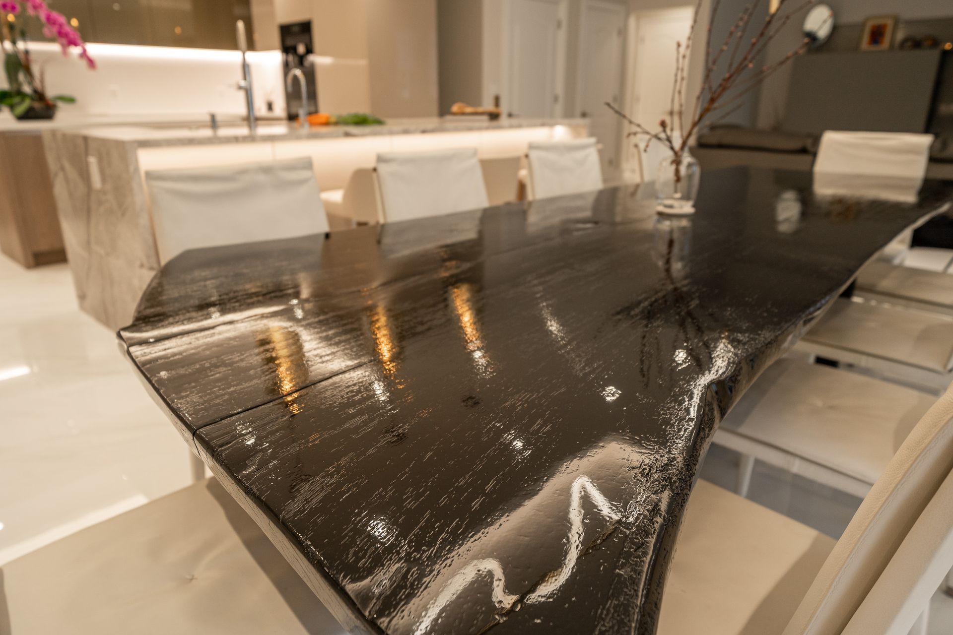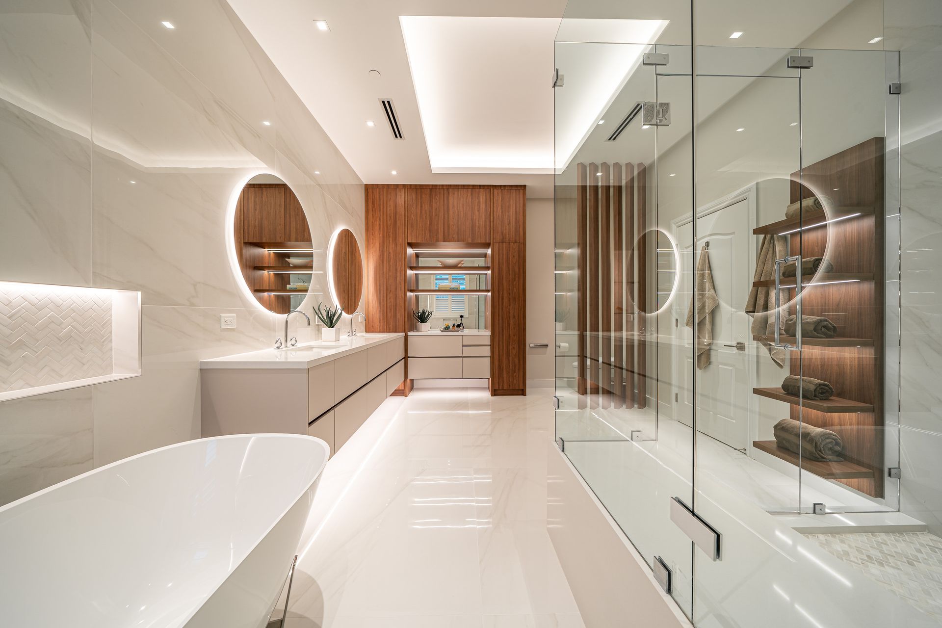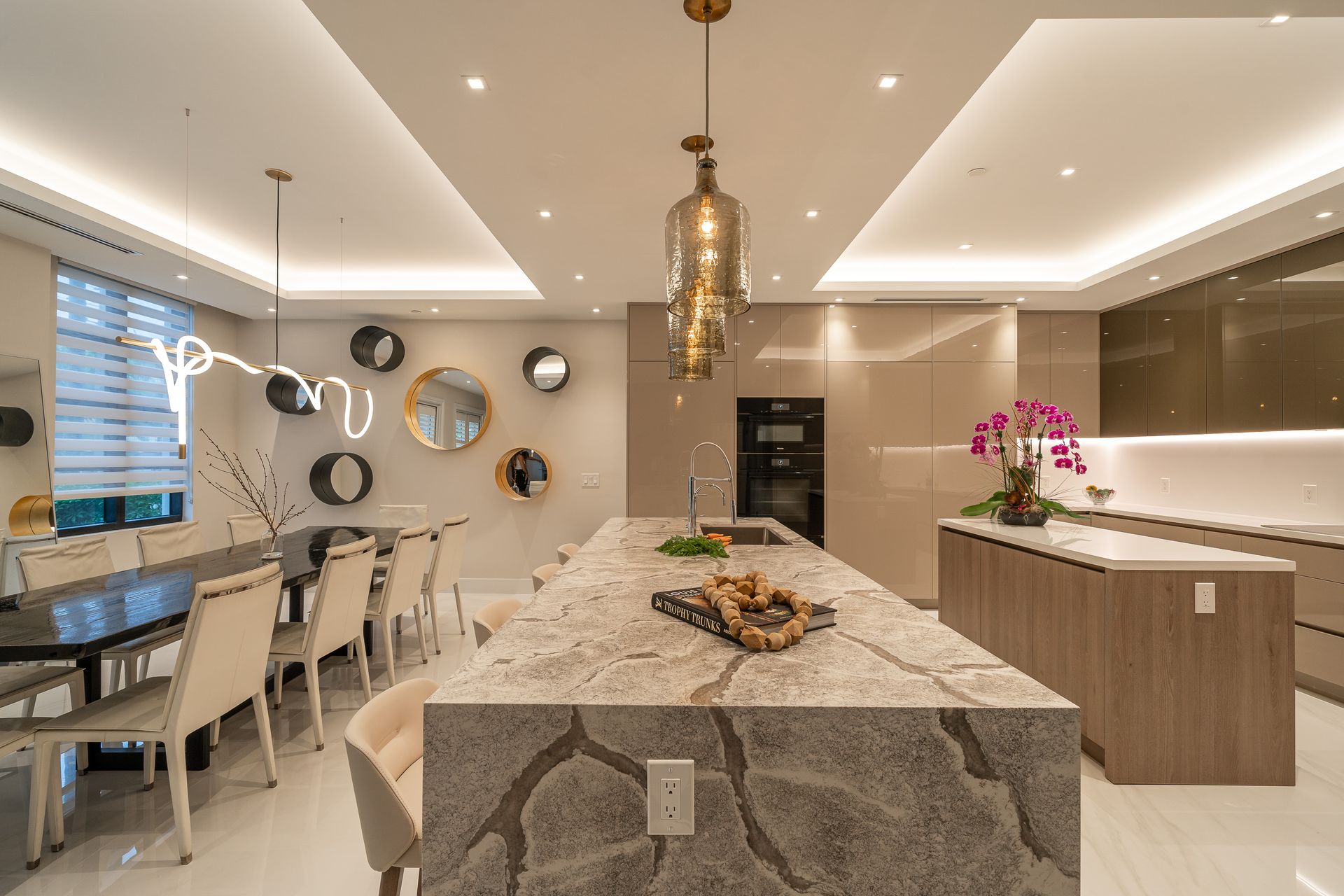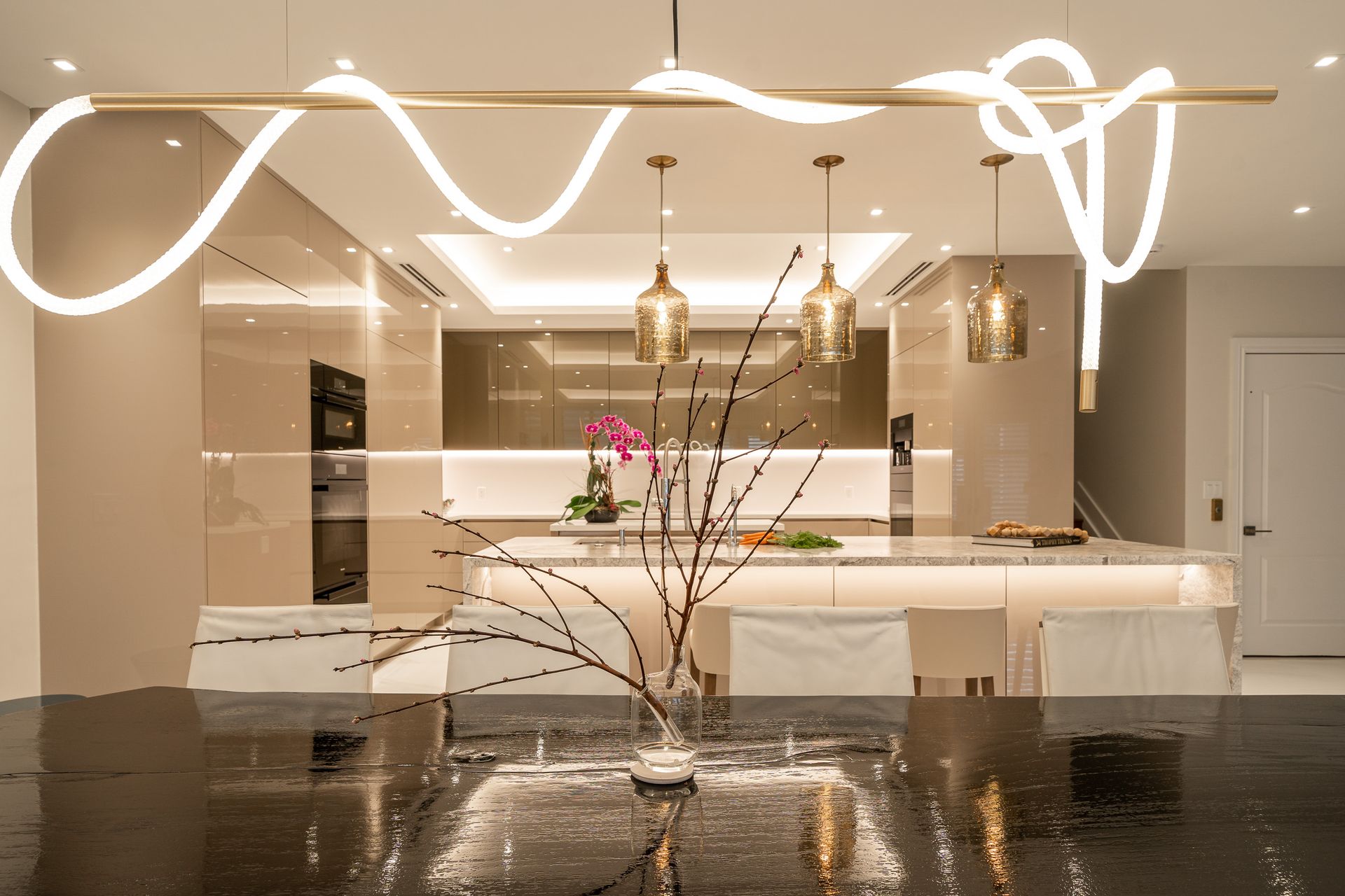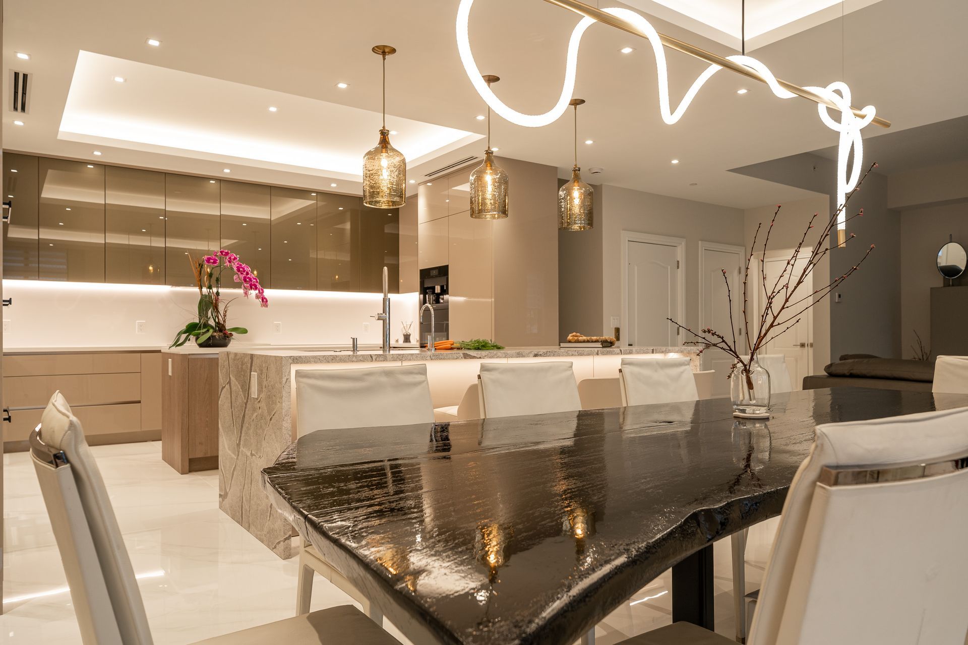 In the realm of European excellence, we embarked on a journey where we meticulously curated a selection of exceptional products, including Karman lighting, Cambria tops, fully custom millwork, Gessi plumbing fixtures, Italian porcelain flooring, special indirect lighting systems, Miele appliances, THG Faucet, Custom Mirrors, Electronic Toto Toilets, Native Trail Sinks, European Mosaics, natural slat wood walls, Italian furniture by Potocco, a high-gloss live edge table, Tom Dixon lighting, and a Villeroy & Boch tub, serving as authorized dealers for these unique elements, ensuring the culmination of unparalleled quality and craftsmanship in our project.