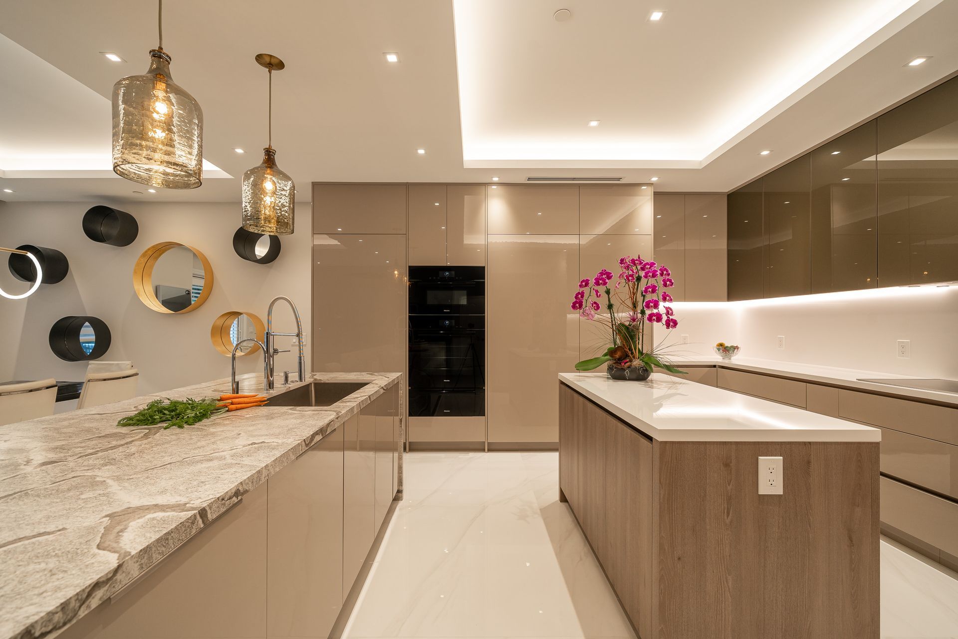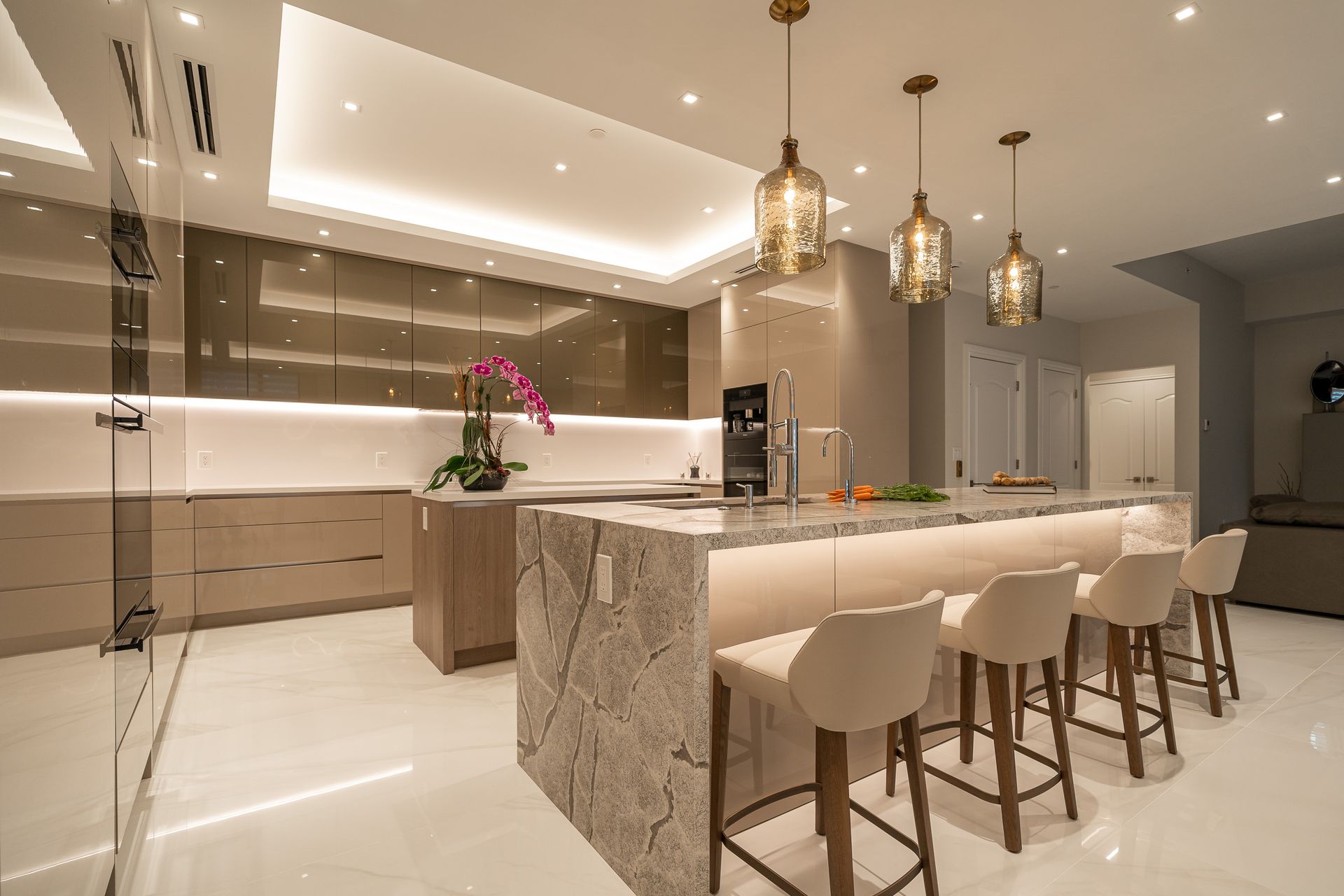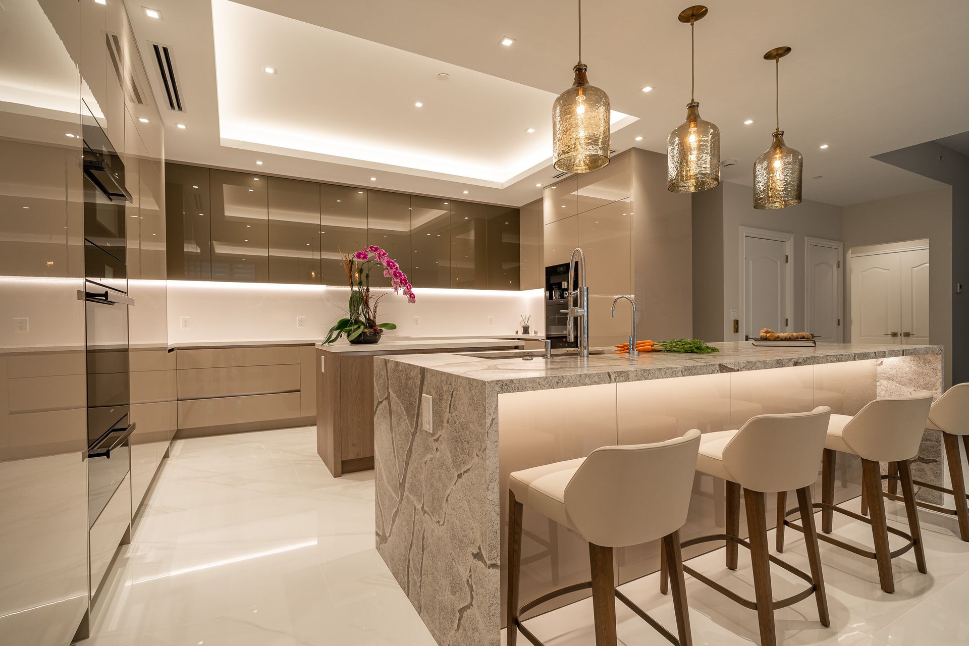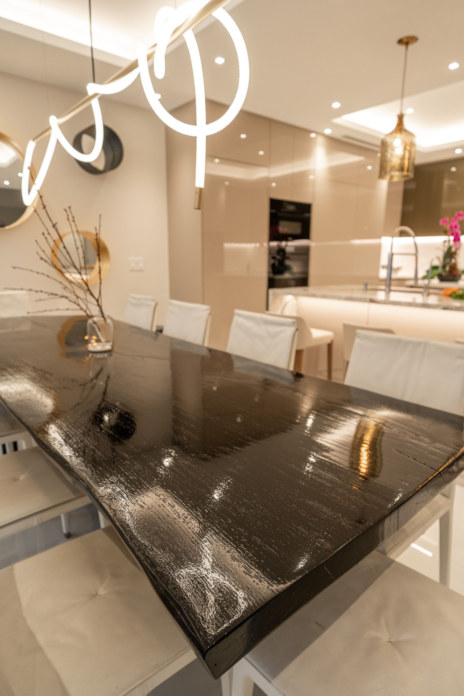 In the realm of European excellence, we embarked on a journey where we meticulously curated a selection of exceptional products, including Karman lighting, Cambria tops, fully custom millwork, Gessi plumbing fixtures, Italian porcelain flooring, special indirect lighting systems, Miele appliances, THG Faucet, Custom Mirrors, Electronic Toto Toilets, Native Trail Sinks, European Mosaics, natural slat wood walls, Italian furniture by Potocco, a high-gloss live edge table, Tom Dixon lighting, and a Villeroy & Boch tub, serving as authorized dealers for these unique elements, ensuring the culmination of unparalleled quality and craftsmanship in our project.