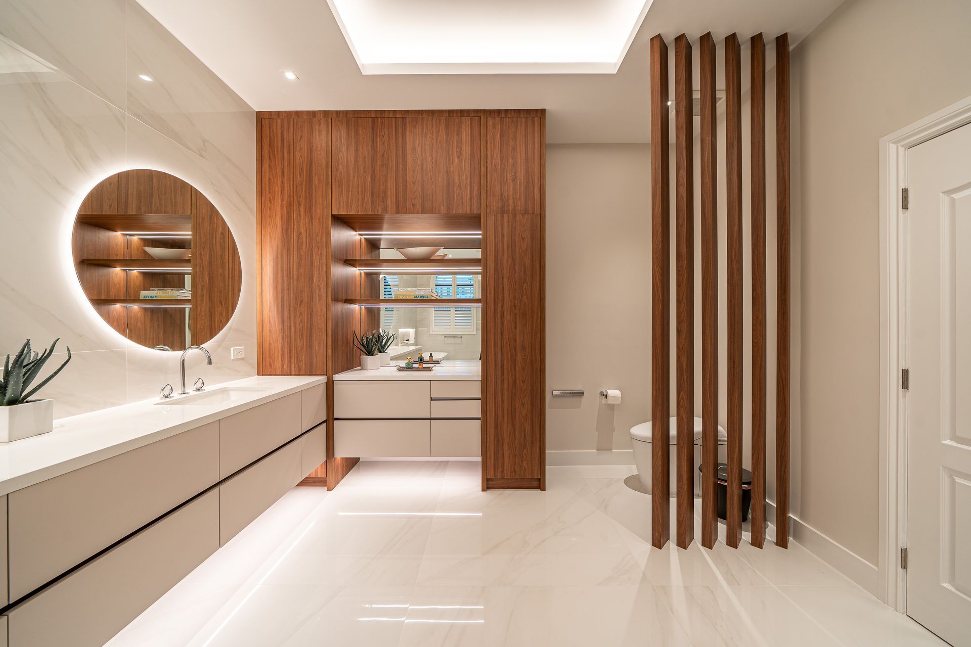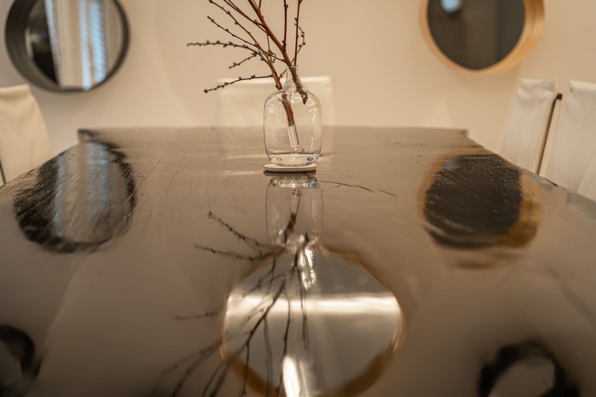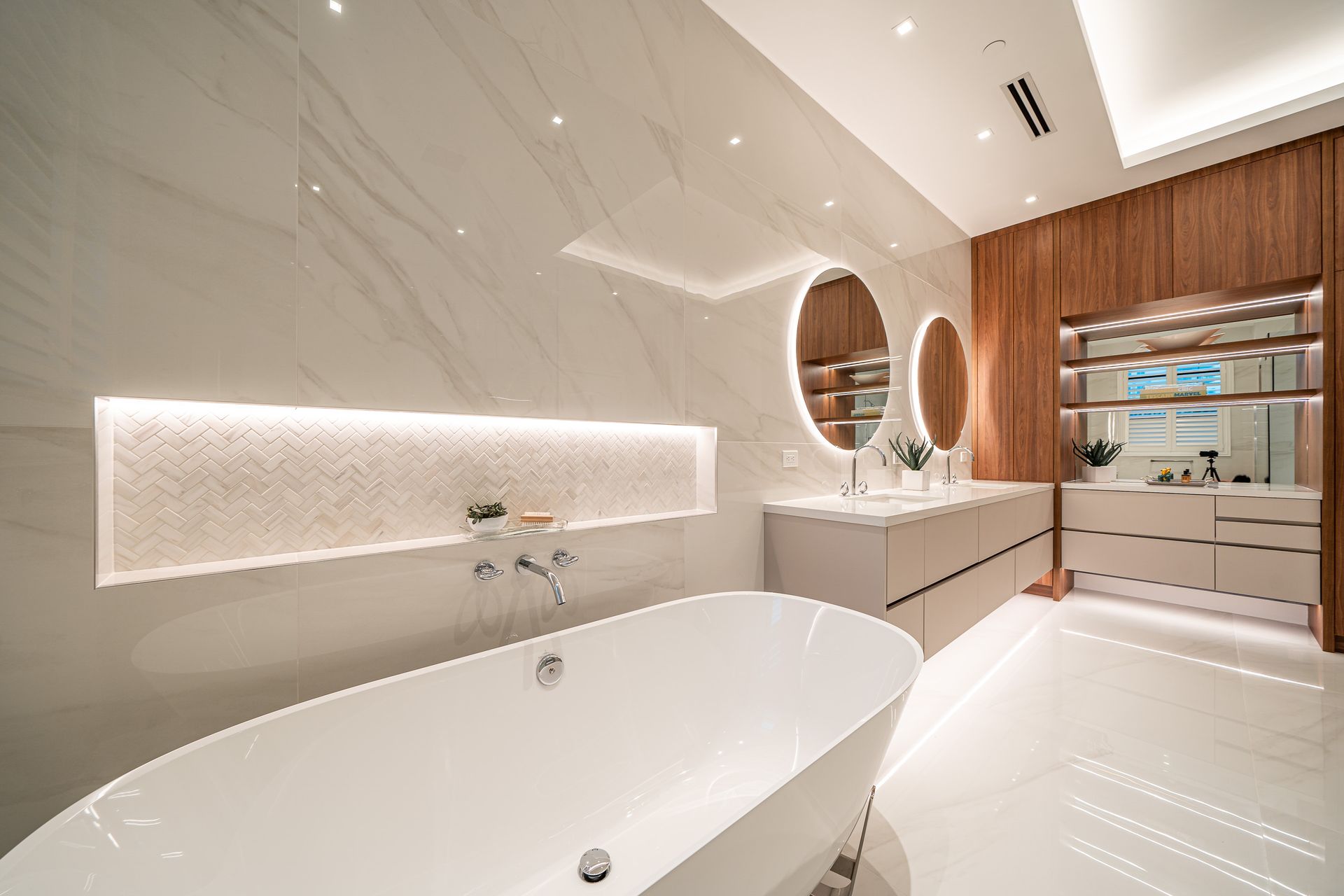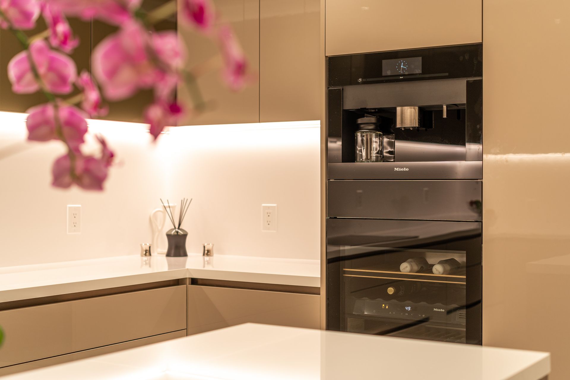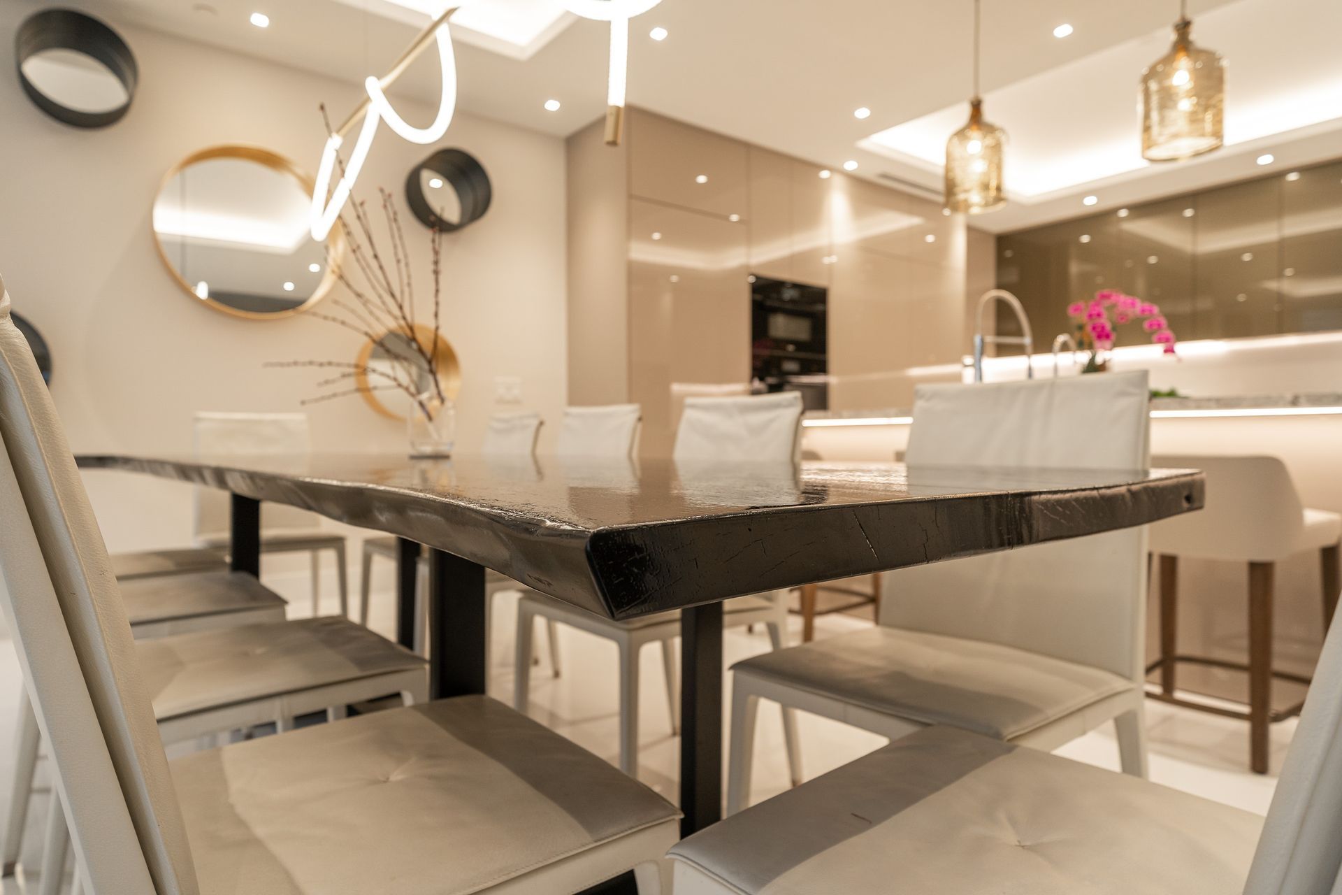 In the realm of European excellence, we embarked on a journey where we meticulously curated a selection of exceptional products, including Karman lighting, Cambria tops, fully custom millwork, Gessi plumbing fixtures, Italian porcelain flooring, special indirect lighting systems, Miele appliances, THG Faucet, Custom Mirrors, Electronic Toto Toilets, Native Trail Sinks, European Mosaics, natural slat wood walls, Italian furniture by Potocco, a high-gloss live edge table, Tom Dixon lighting, and a Villeroy & Boch tub, serving as authorized dealers for these unique elements, ensuring the culmination of unparalleled quality and craftsmanship in our project.