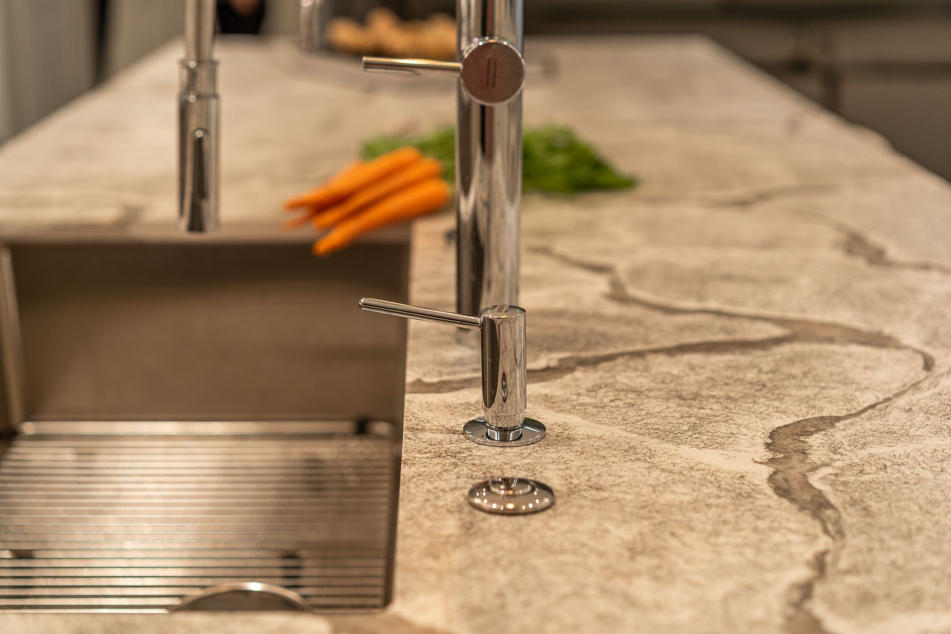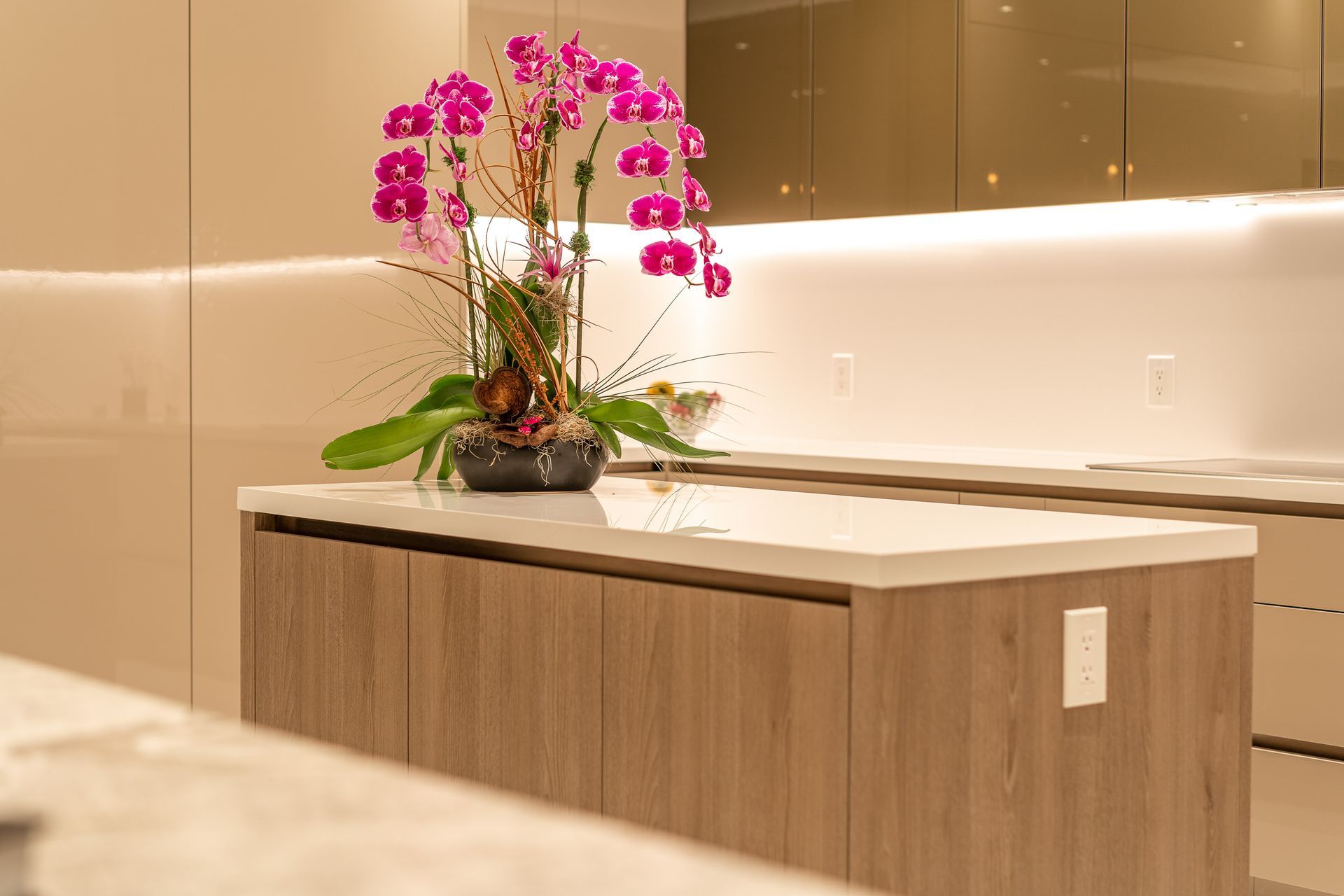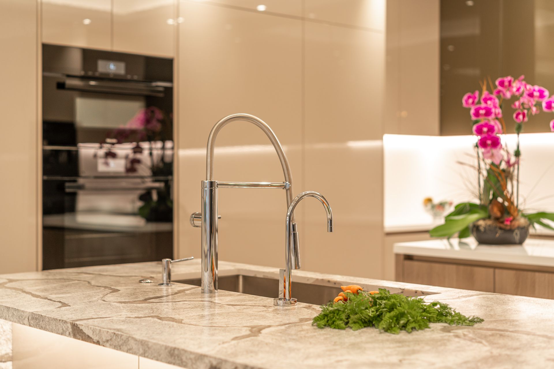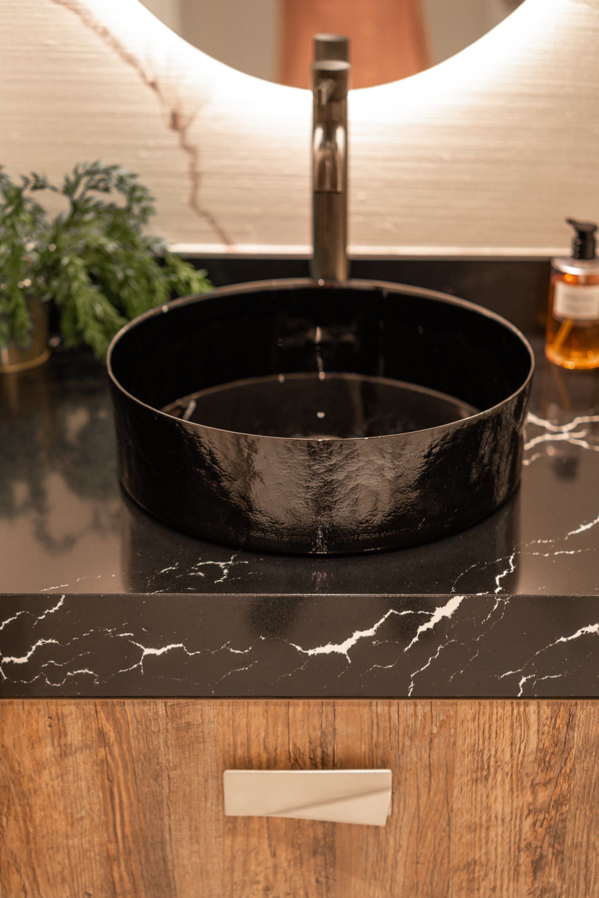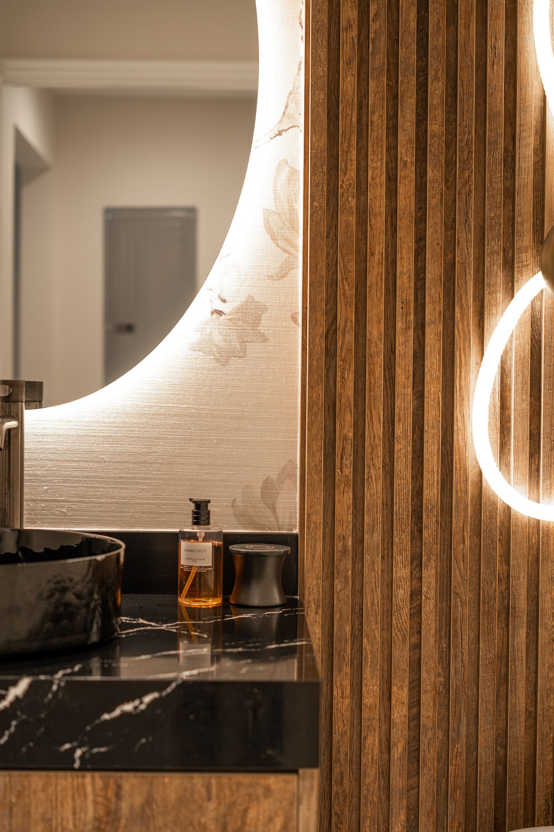 In the realm of European excellence, we embarked on a journey where we meticulously curated a selection of exceptional products, including Karman lighting, Cambria tops, fully custom millwork, Gessi plumbing fixtures, Italian porcelain flooring, special indirect lighting systems, Miele appliances, THG Faucet, Custom Mirrors, Electronic Toto Toilets, Native Trail Sinks, European Mosaics, natural slat wood walls, Italian furniture by Potocco, a high-gloss live edge table, Tom Dixon lighting, and a Villeroy & Boch tub, serving as authorized dealers for these unique elements, ensuring the culmination of unparalleled quality and craftsmanship in our project.