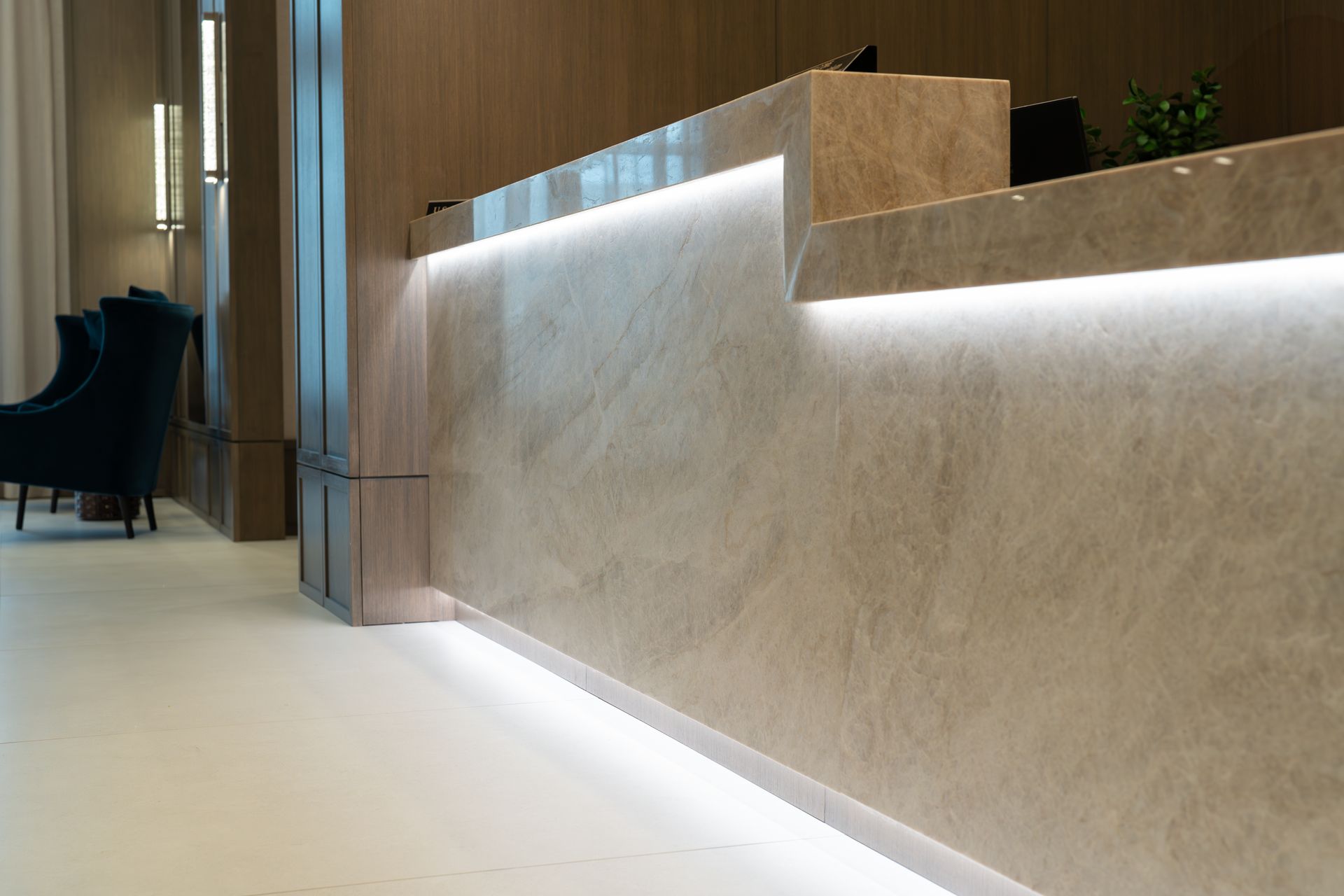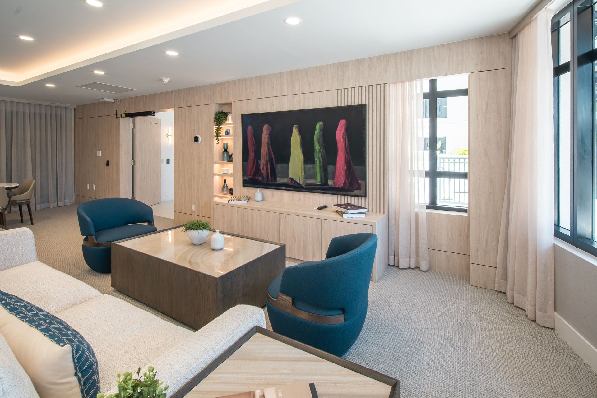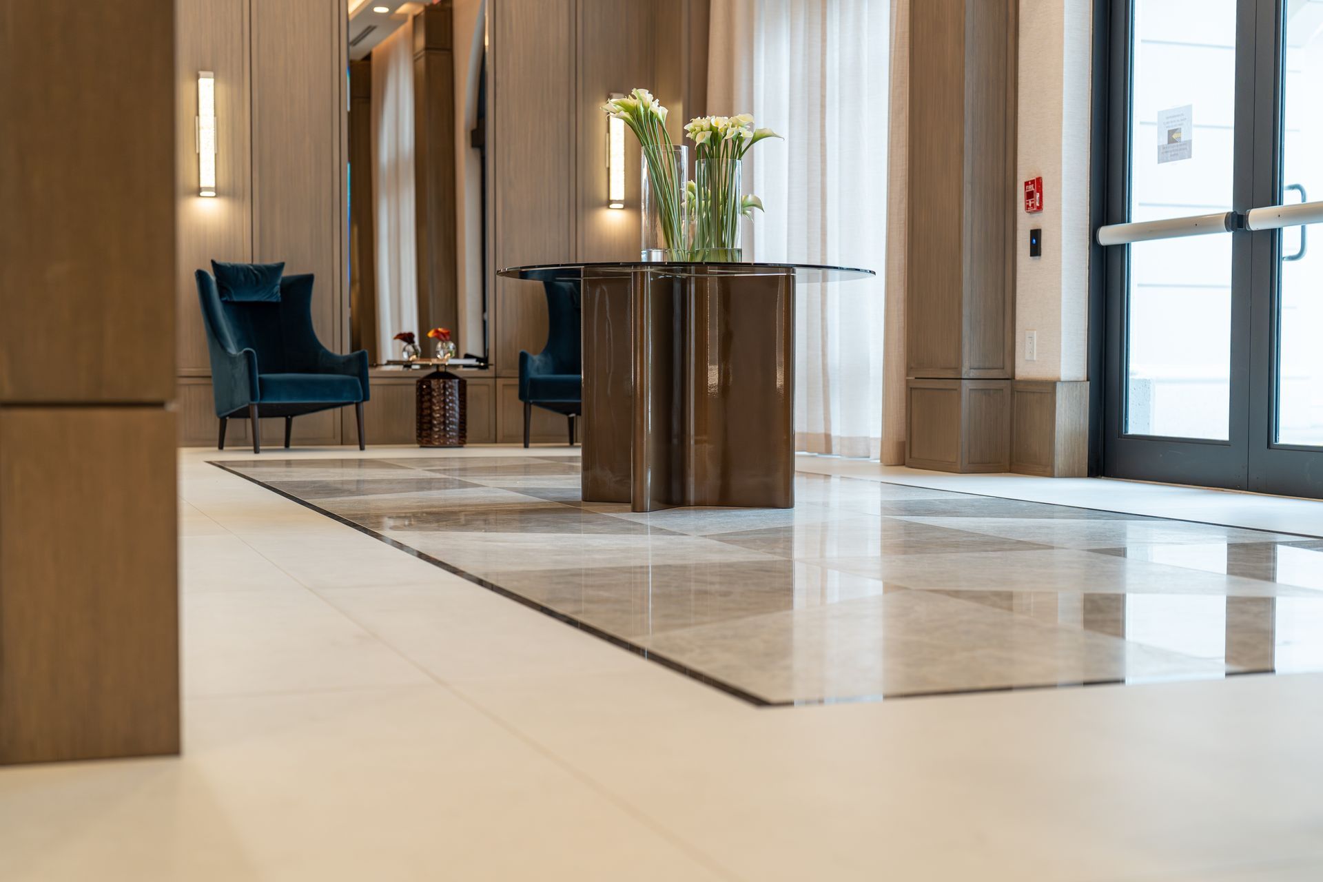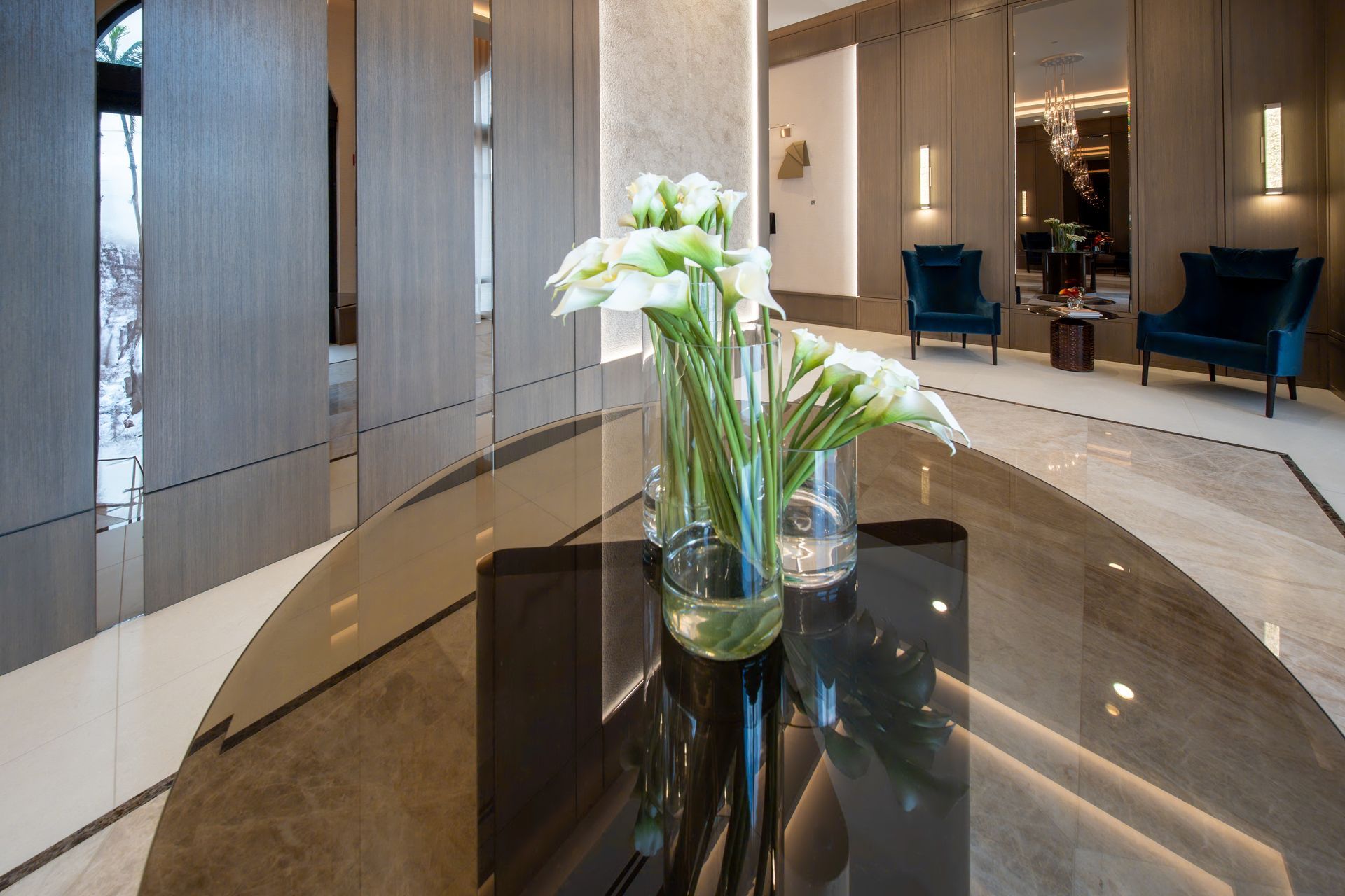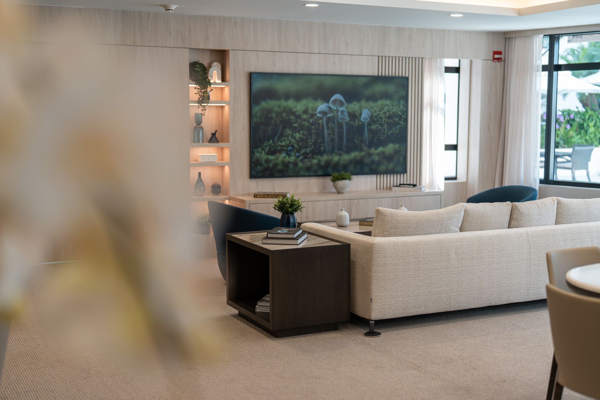 This prestigious renovation reimagined the interior and exterior of one of Boca Raton’s most prominent luxury condominiums—200 East. Spanning over 50,000 square feet, the project included a full overhaul of the building’s common areas and amenities: the Clubroom, all residential corridors, resident entry doors, elevator landings and cabs, main and satellite reception areas, management offices, valet reception, public restrooms, and the grand main lobby. Exterior enhancements included new garage lighting, railings, and apron pavers. Every space was meticulously redesigned to elevate residents’ everyday experience with sophistication, elegance, and timeless style.