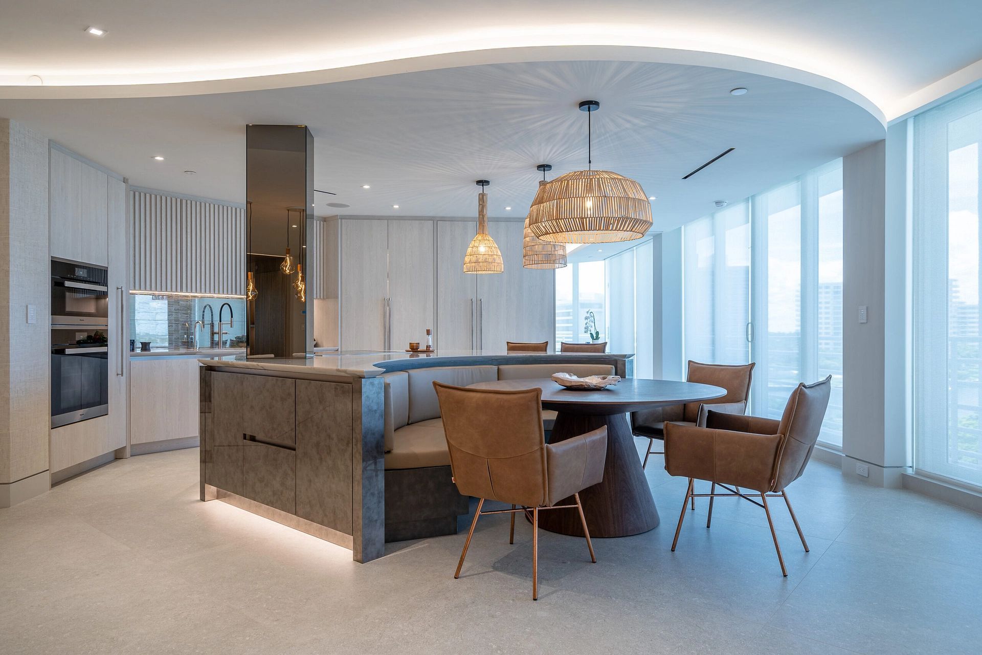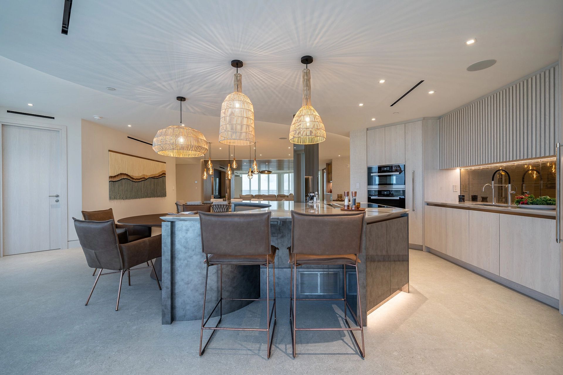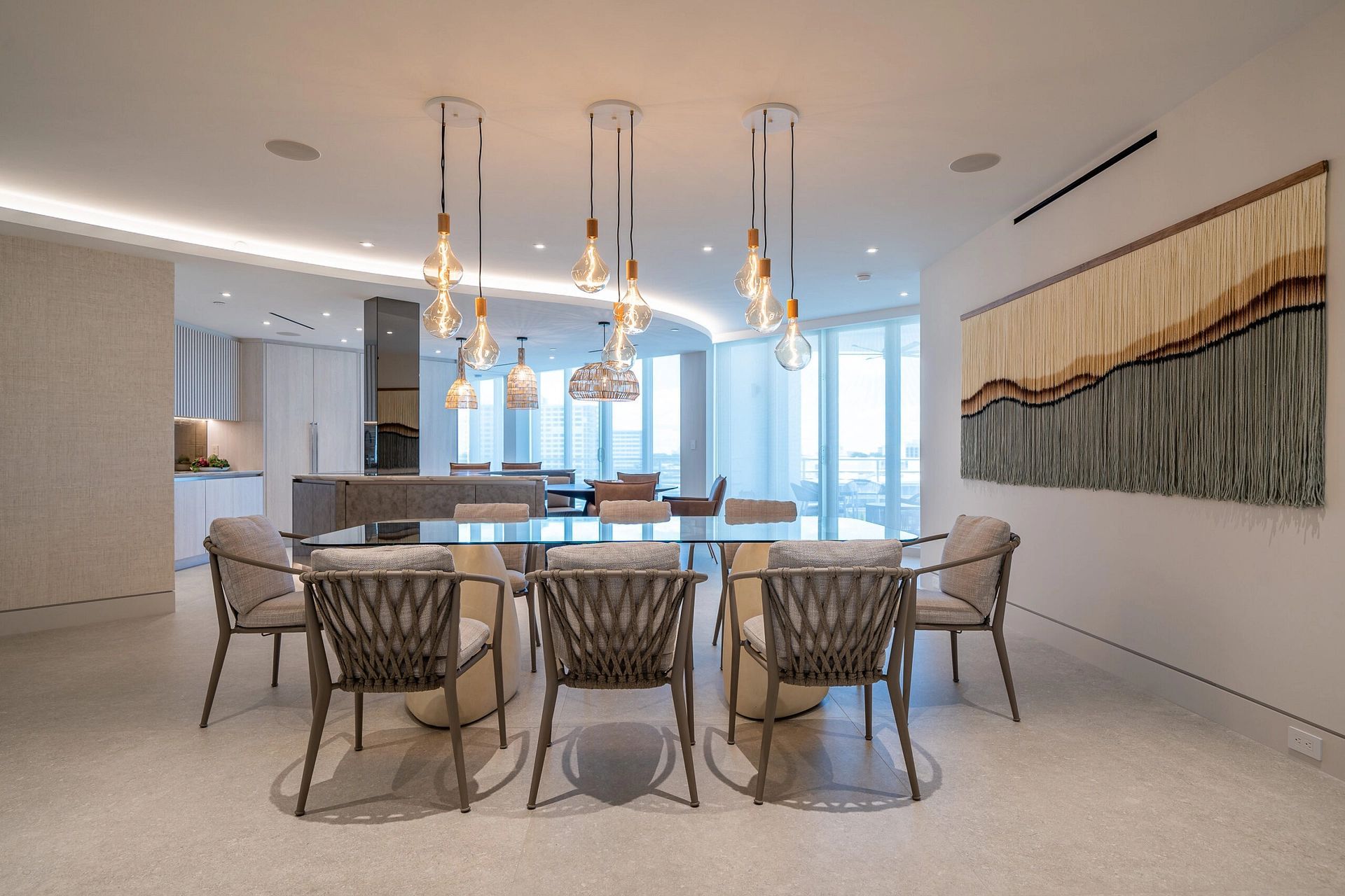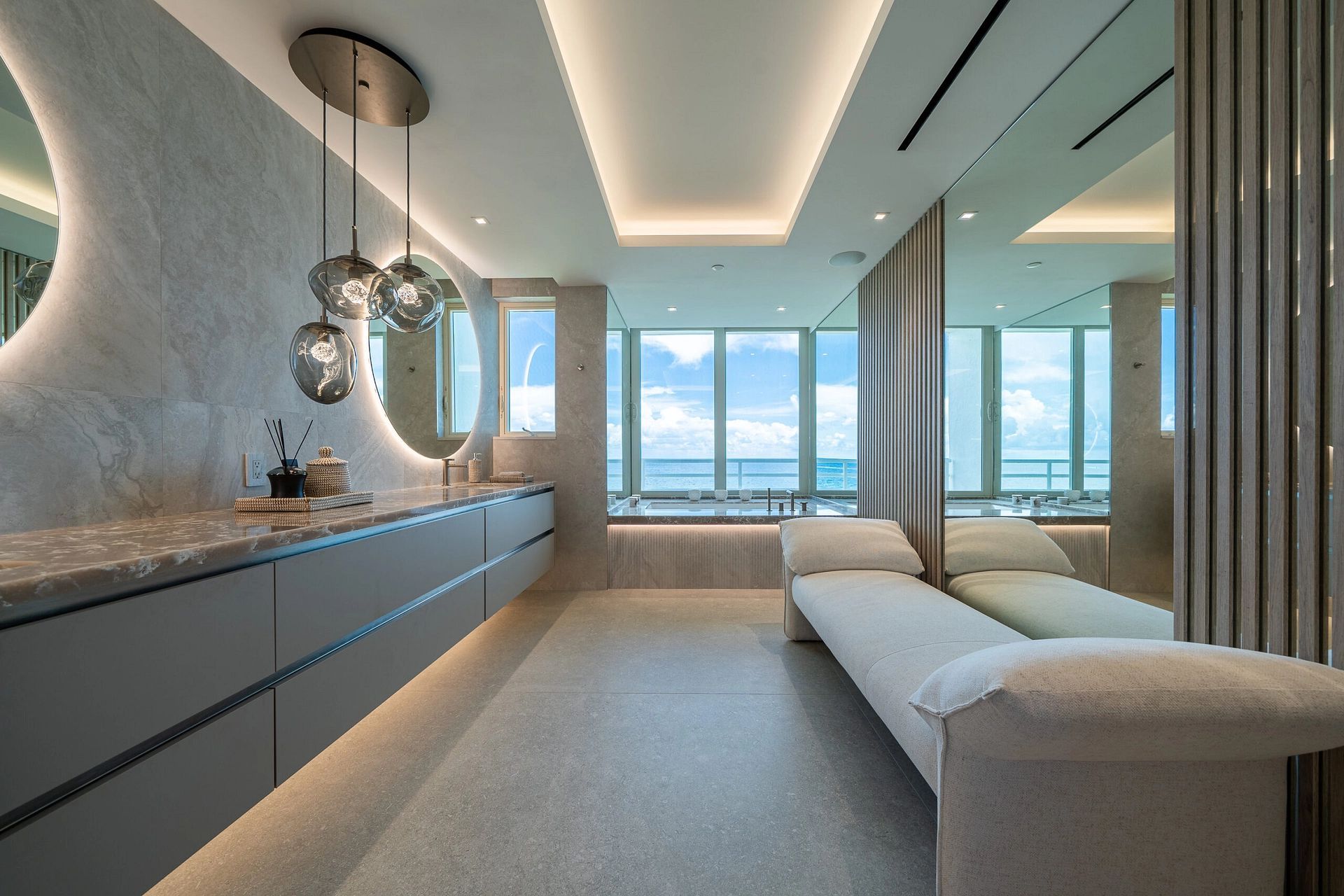 "In this captivating job opportunity, we've had the privilege of collaborating closely with our delightful clients from London within their beachfront condo in the vibrant Boca Raton. From initial demolition to the finest silverware, we've executed a comprehensive approach, encompassing layout and design, furnishings, built-ins, construction administration, and more, to create an exceptional living space that meets all their needs."