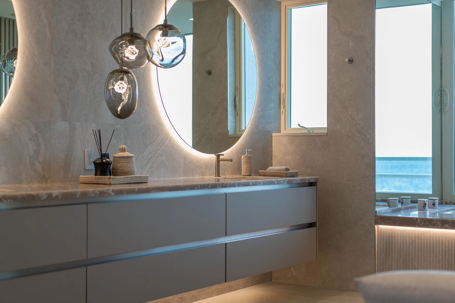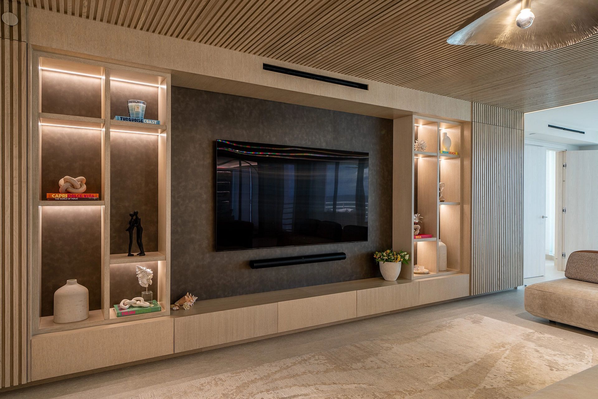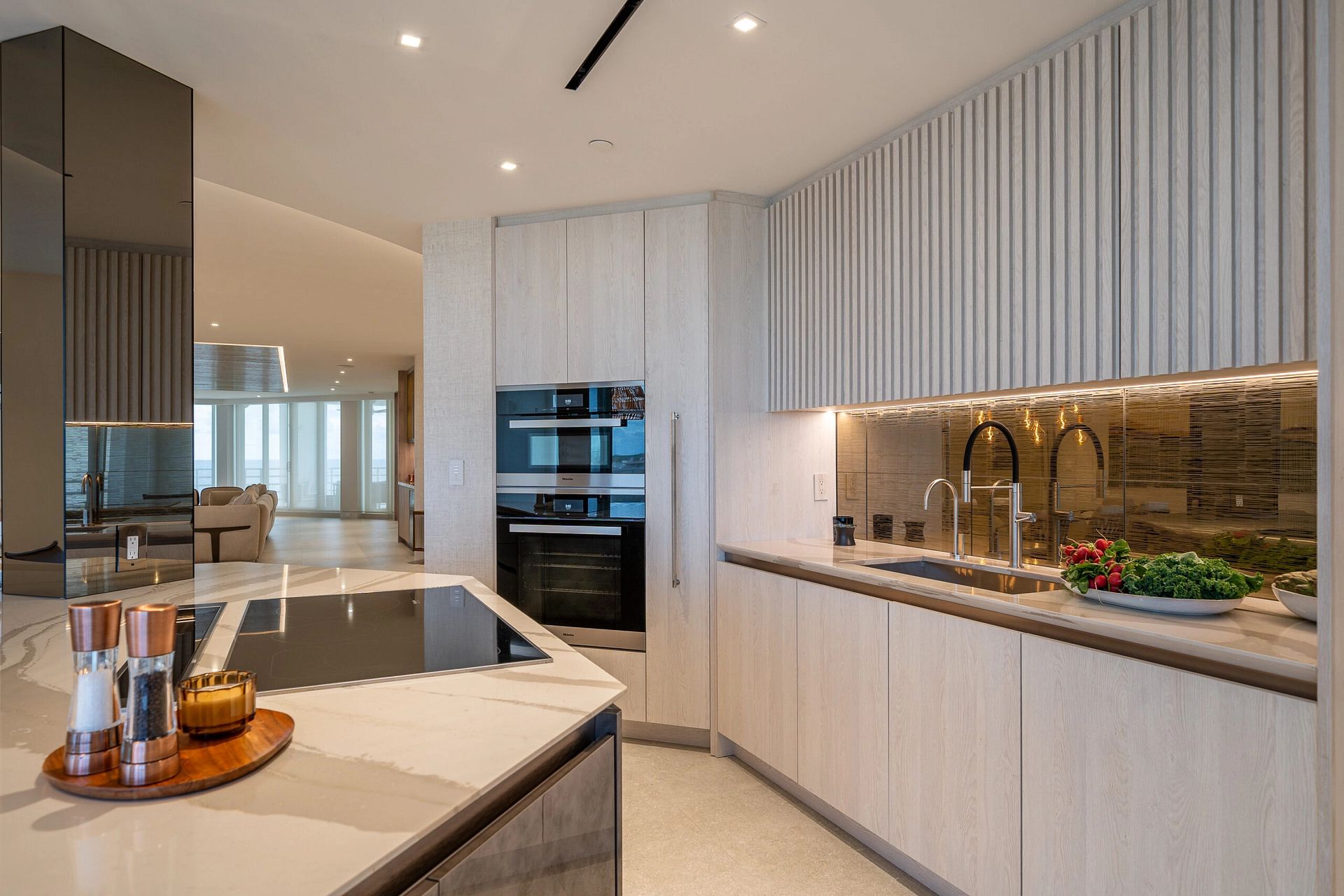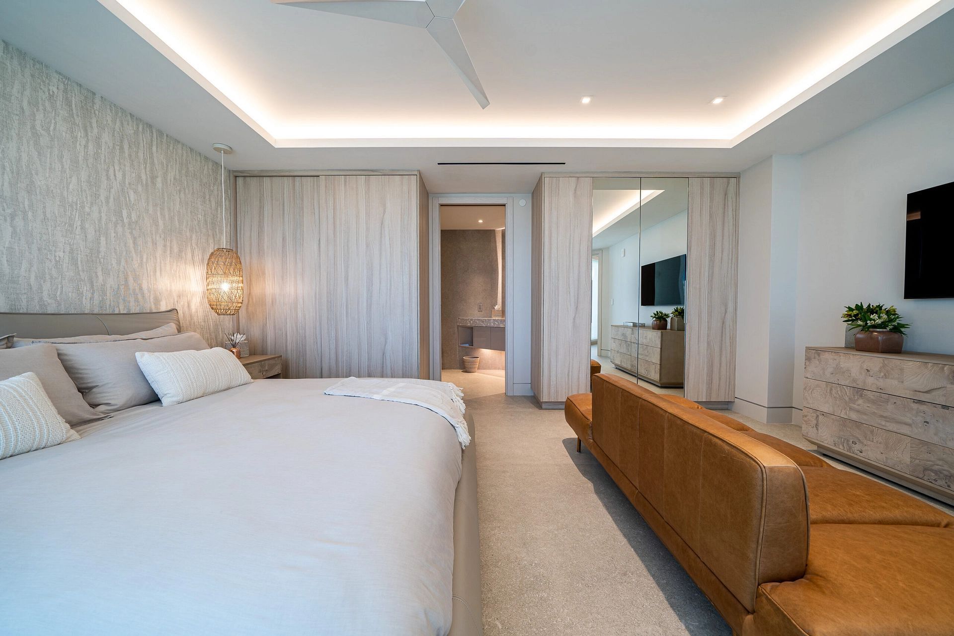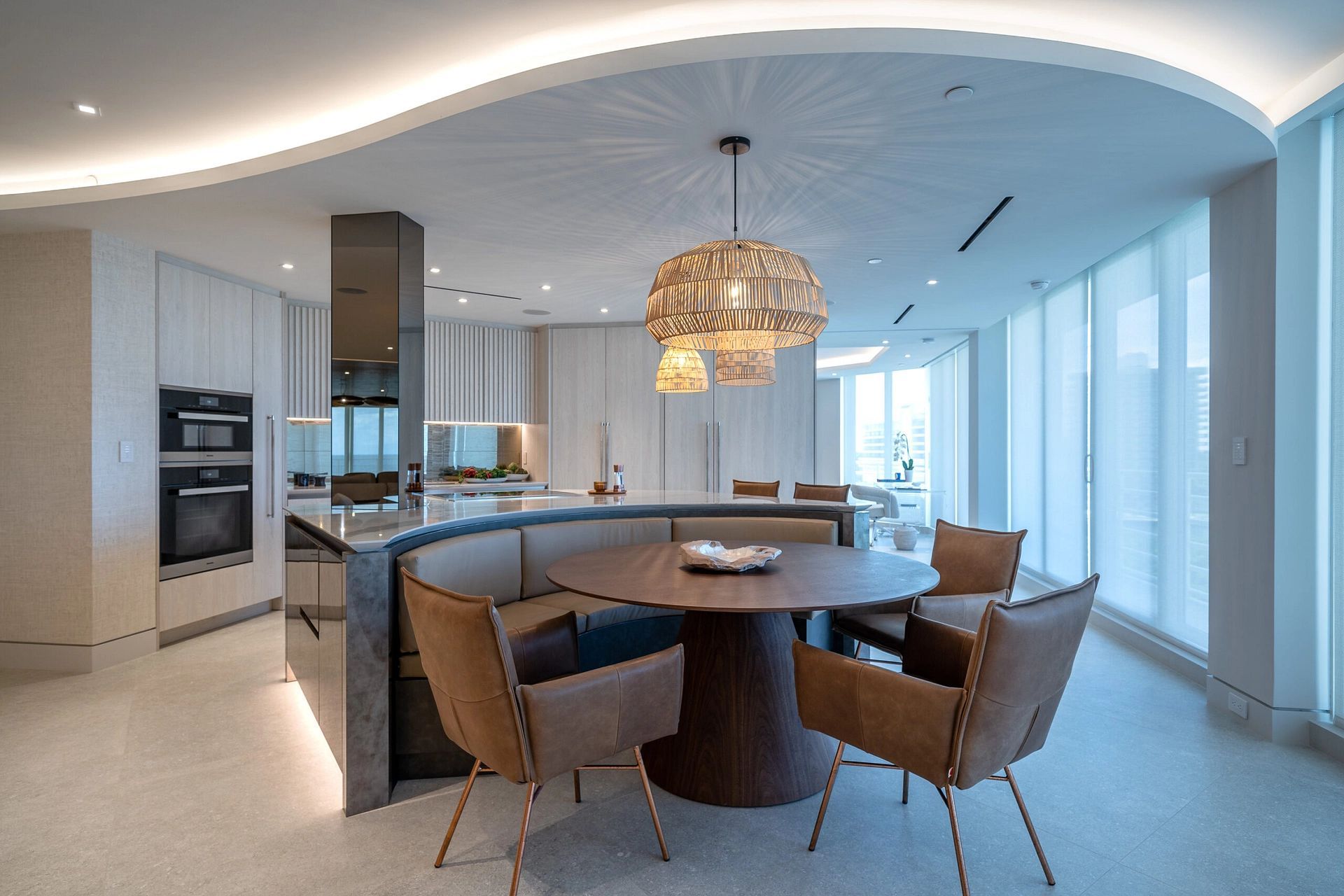 "In this captivating job opportunity, we've had the privilege of collaborating closely with our delightful clients from London within their beachfront condo in the vibrant Boca Raton. From initial demolition to the finest silverware, we've executed a comprehensive approach, encompassing layout and design, furnishings, built-ins, construction administration, and more, to create an exceptional living space that meets all their needs."