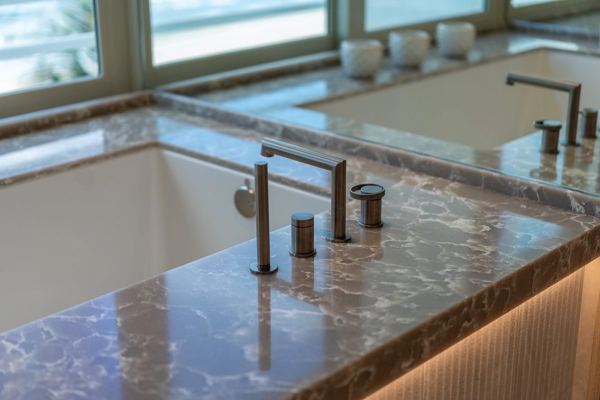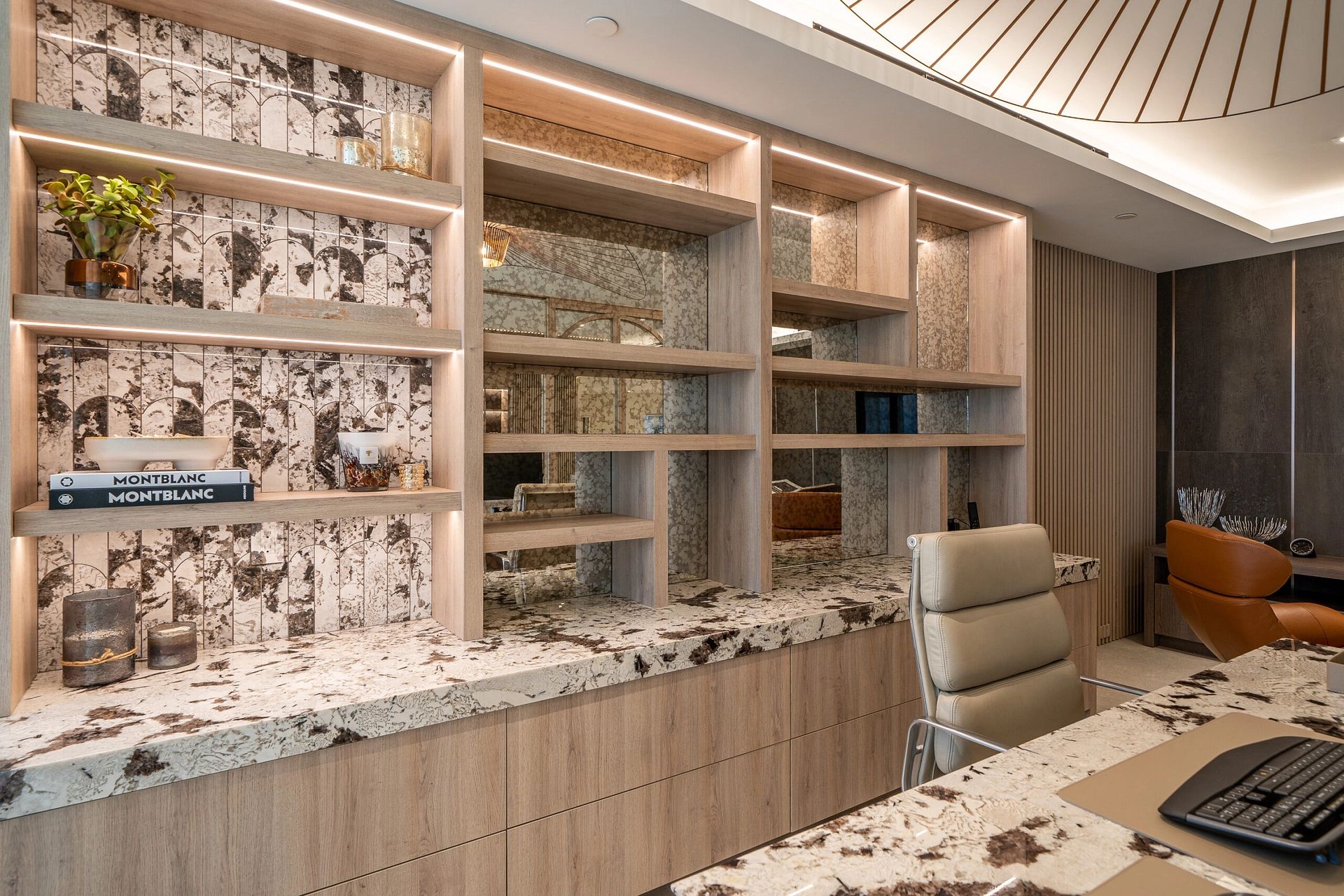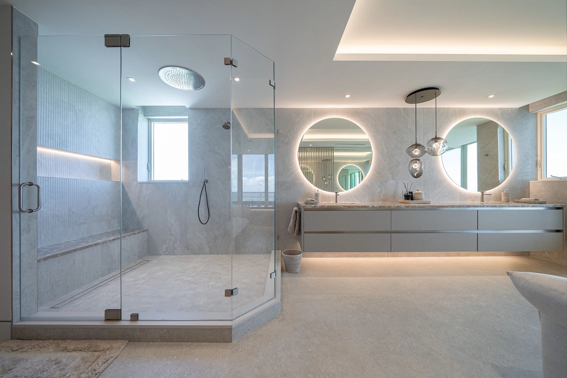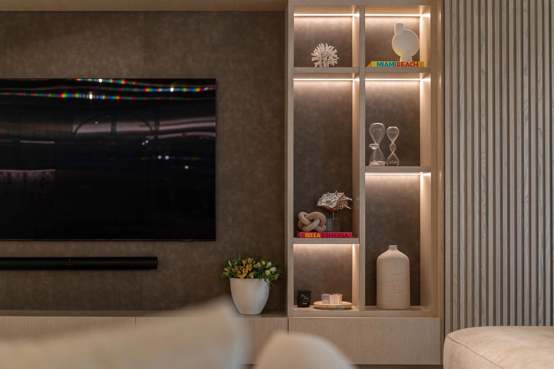 "In this captivating job opportunity, we've had the privilege of collaborating closely with our delightful clients from London within their beachfront condo in the vibrant Boca Raton. From initial demolition to the finest silverware, we've executed a comprehensive approach, encompassing layout and design, furnishings, built-ins, construction administration, and more, to create an exceptional living space that meets all their needs."