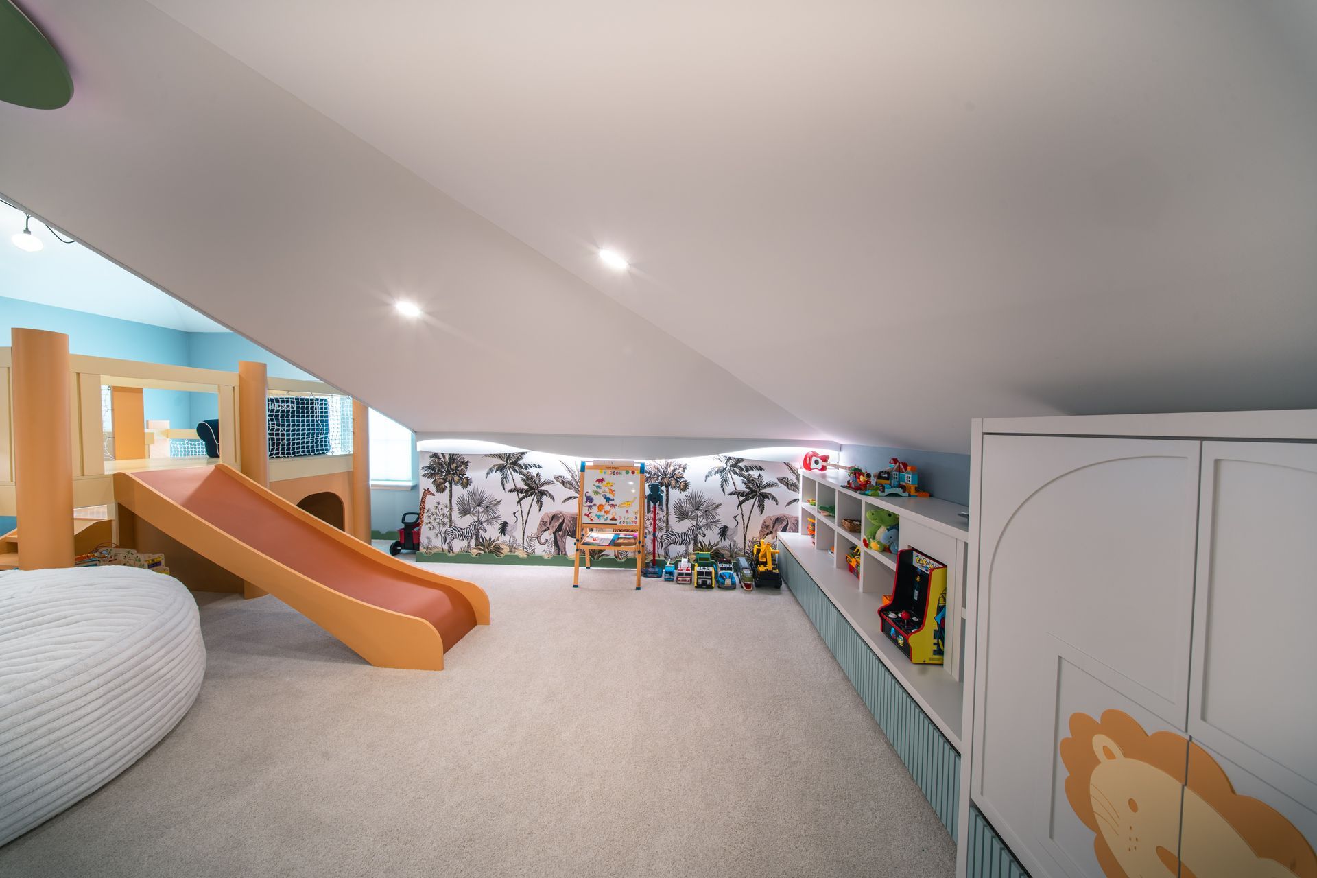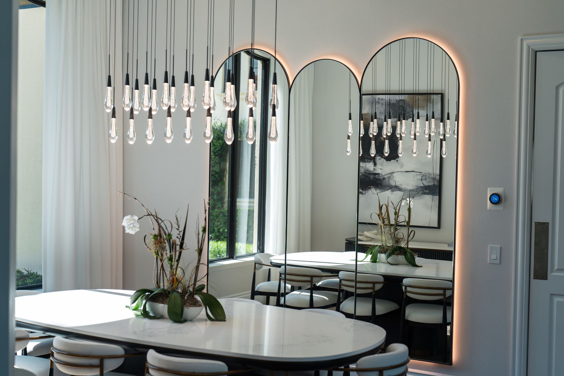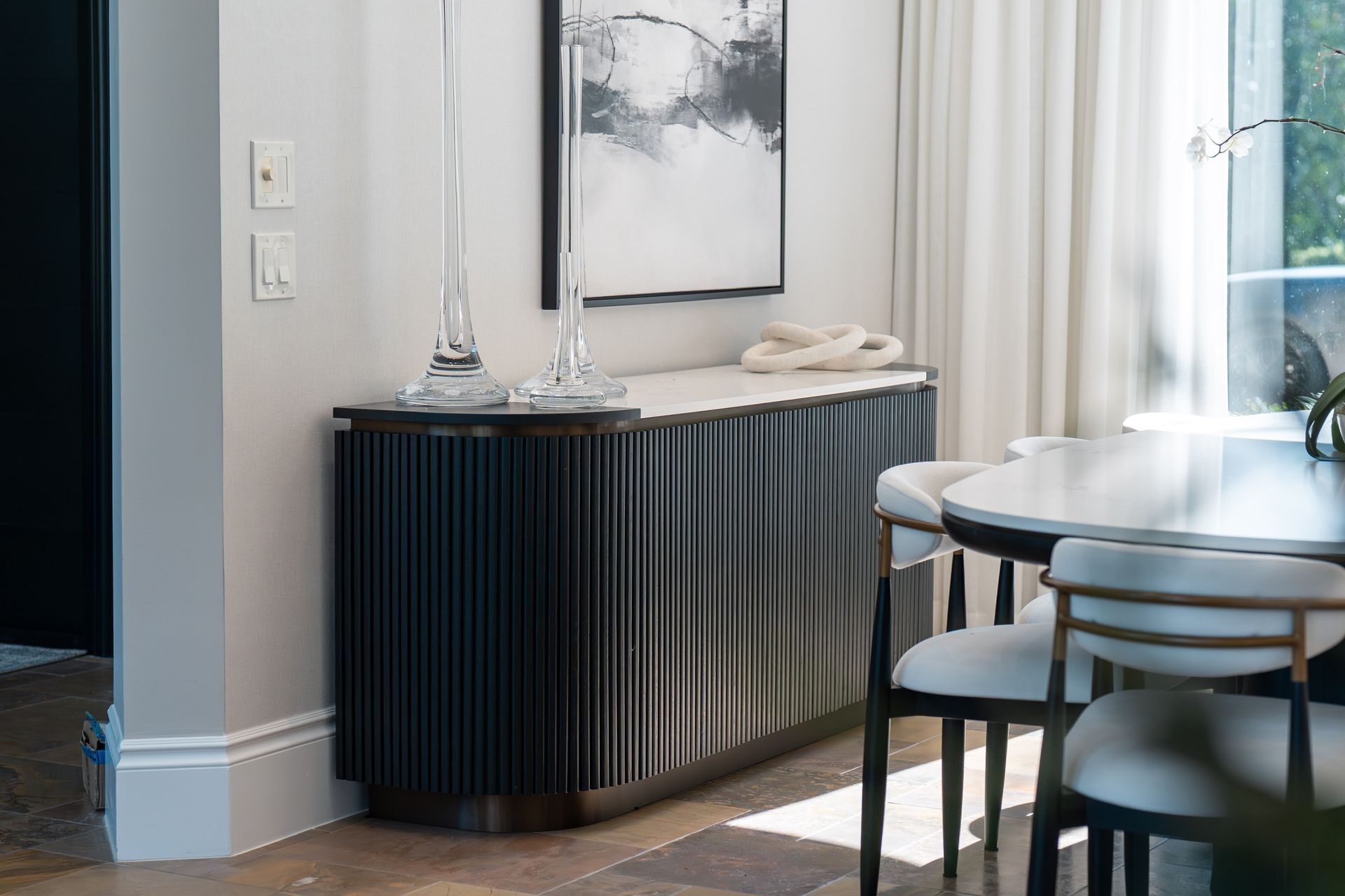 This expansive interior renovation was a fully customized experience, transforming both functional and lifestyle-driven spaces throughout the home. JL Projects reimagined the master suite—including the bathroom and dual closets—with premium finishes and meticulous detailing. A bespoke child’s playroom was tailored for flexibility, safety, and playful organization. The dining area, outfitted with a custom table and console, balances everyday living with elegant hosting. Practical spaces received just as much attention: a full millwork upgrade to the garage, laundry, and mudroom now elevates utility with sophistication. A serene Pilates studio rounds out the transformation, offering a space designed for daily restoration.