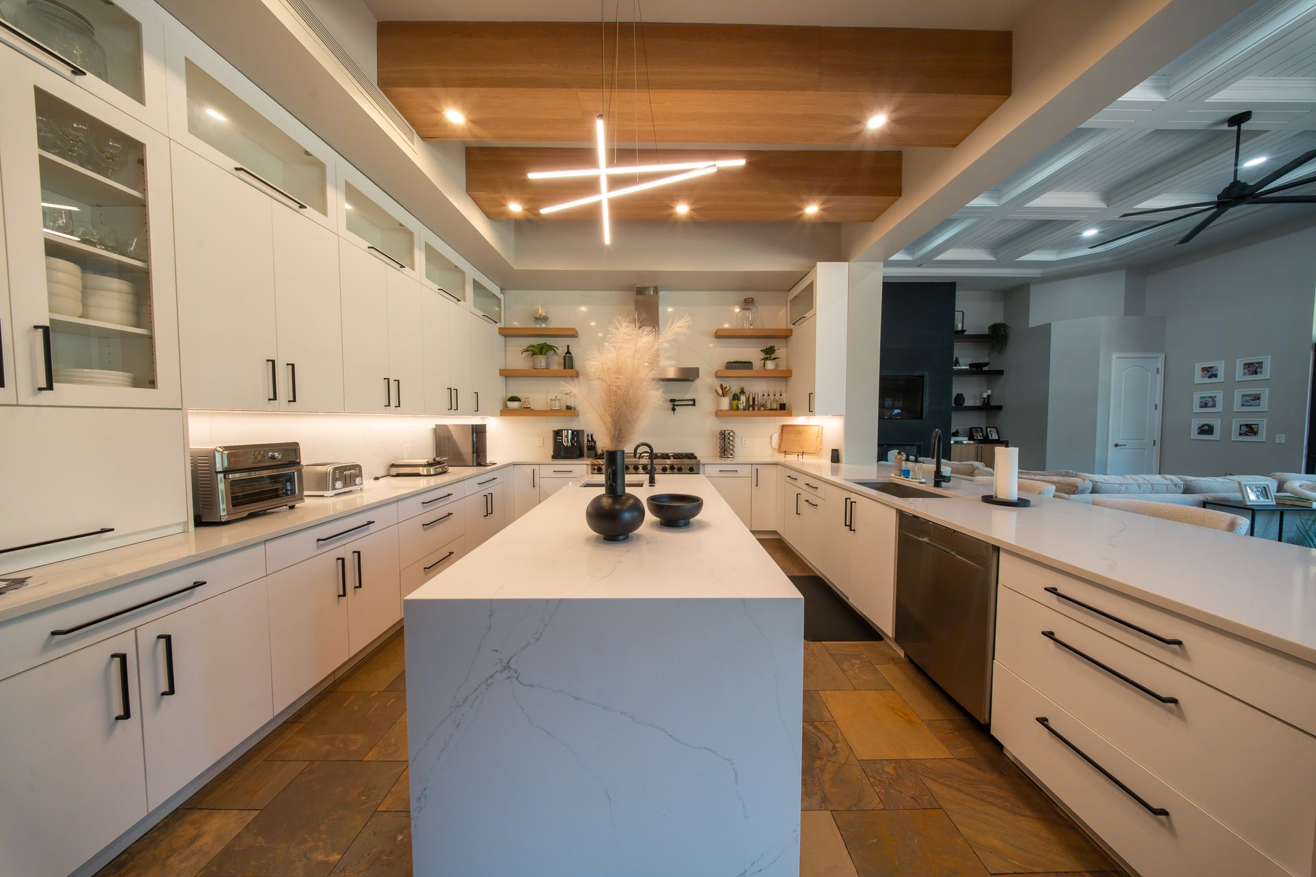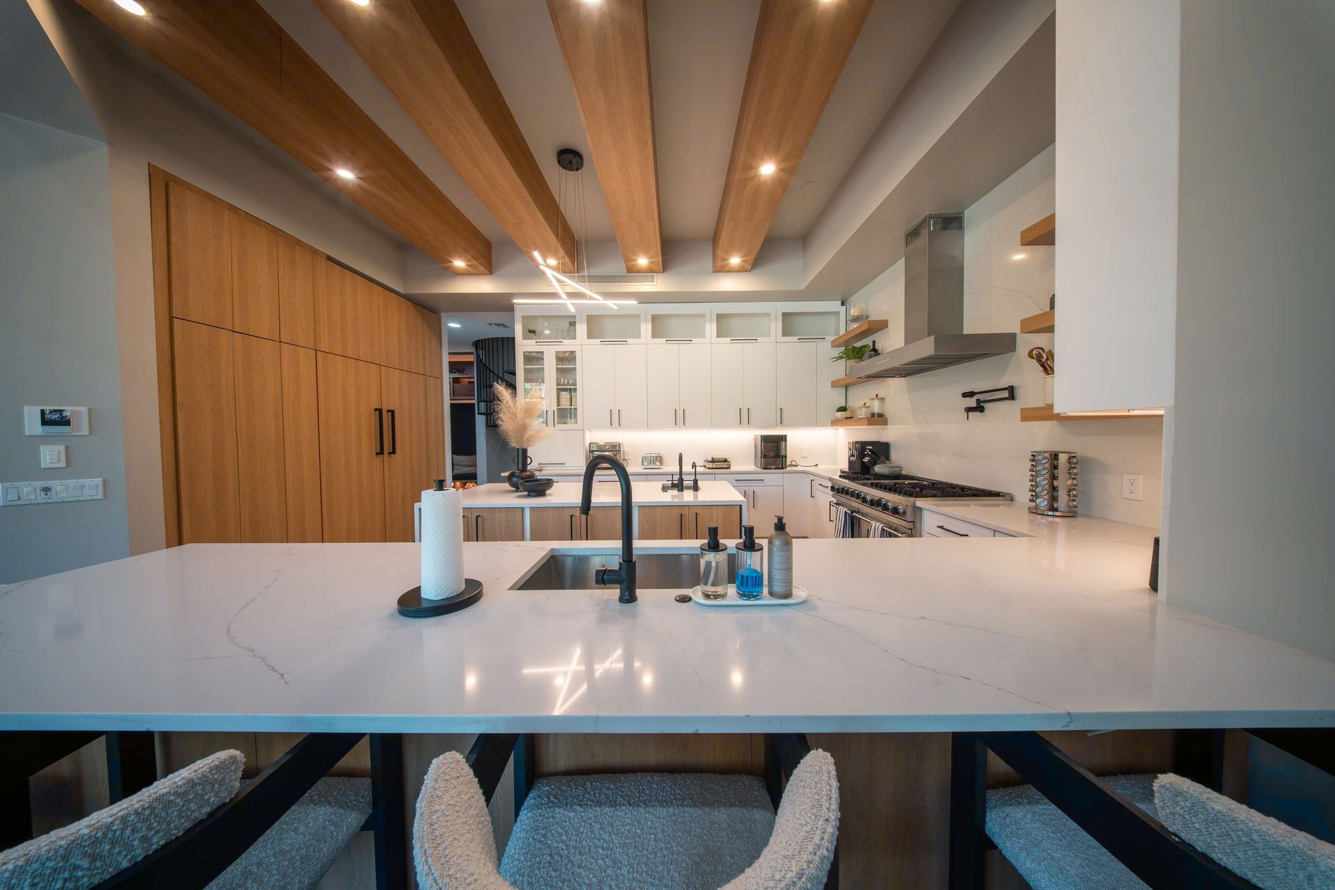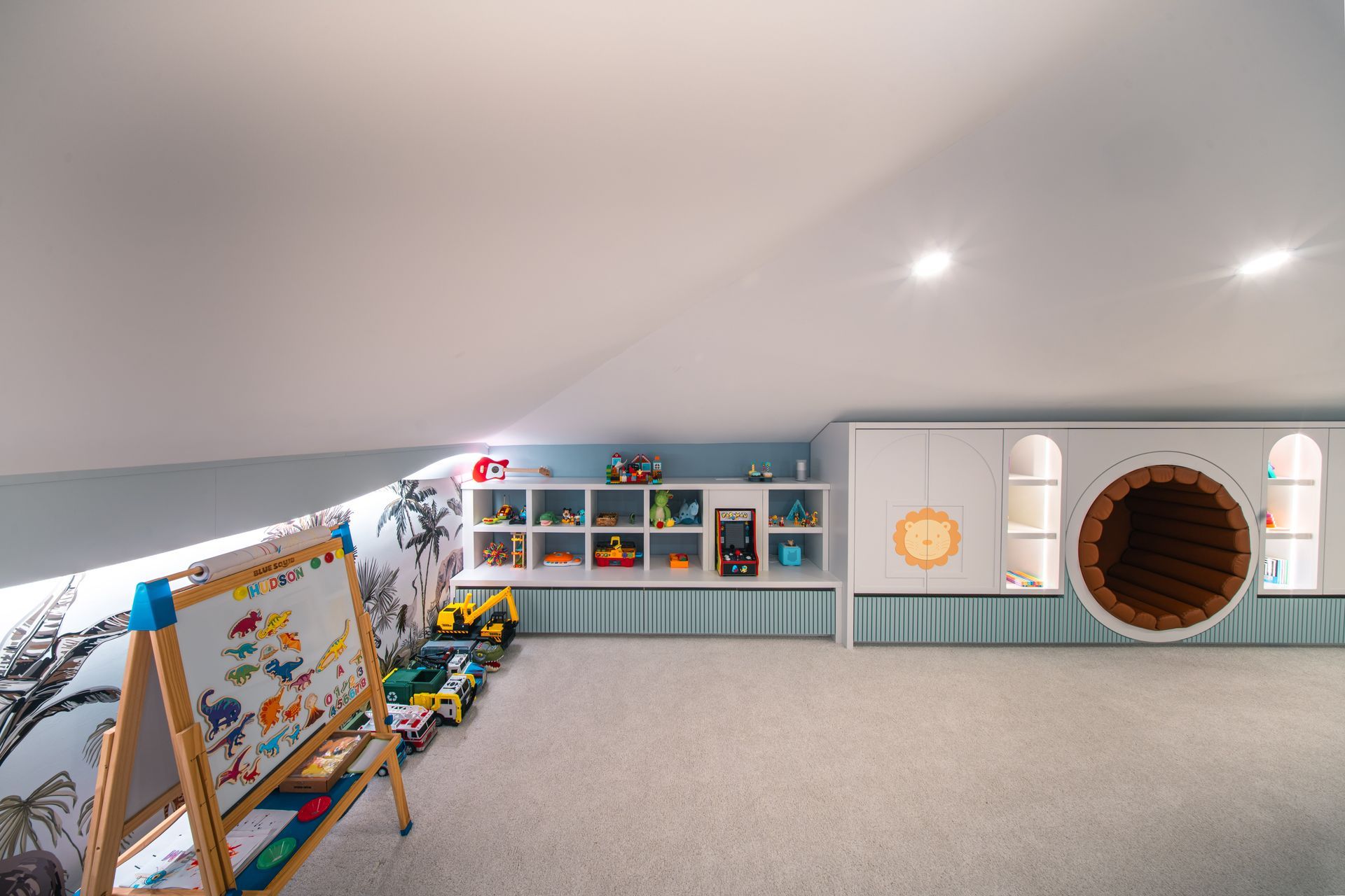 This expansive interior renovation was a fully customized experience, transforming both functional and lifestyle-driven spaces throughout the home. JL Projects reimagined the master suite—including the bathroom and dual closets—with premium finishes and meticulous detailing. A bespoke child’s playroom was tailored for flexibility, safety, and playful organization. The dining area, outfitted with a custom table and console, balances everyday living with elegant hosting. Practical spaces received just as much attention: a full millwork upgrade to the garage, laundry, and mudroom now elevates utility with sophistication. A serene Pilates studio rounds out the transformation, offering a space designed for daily restoration.