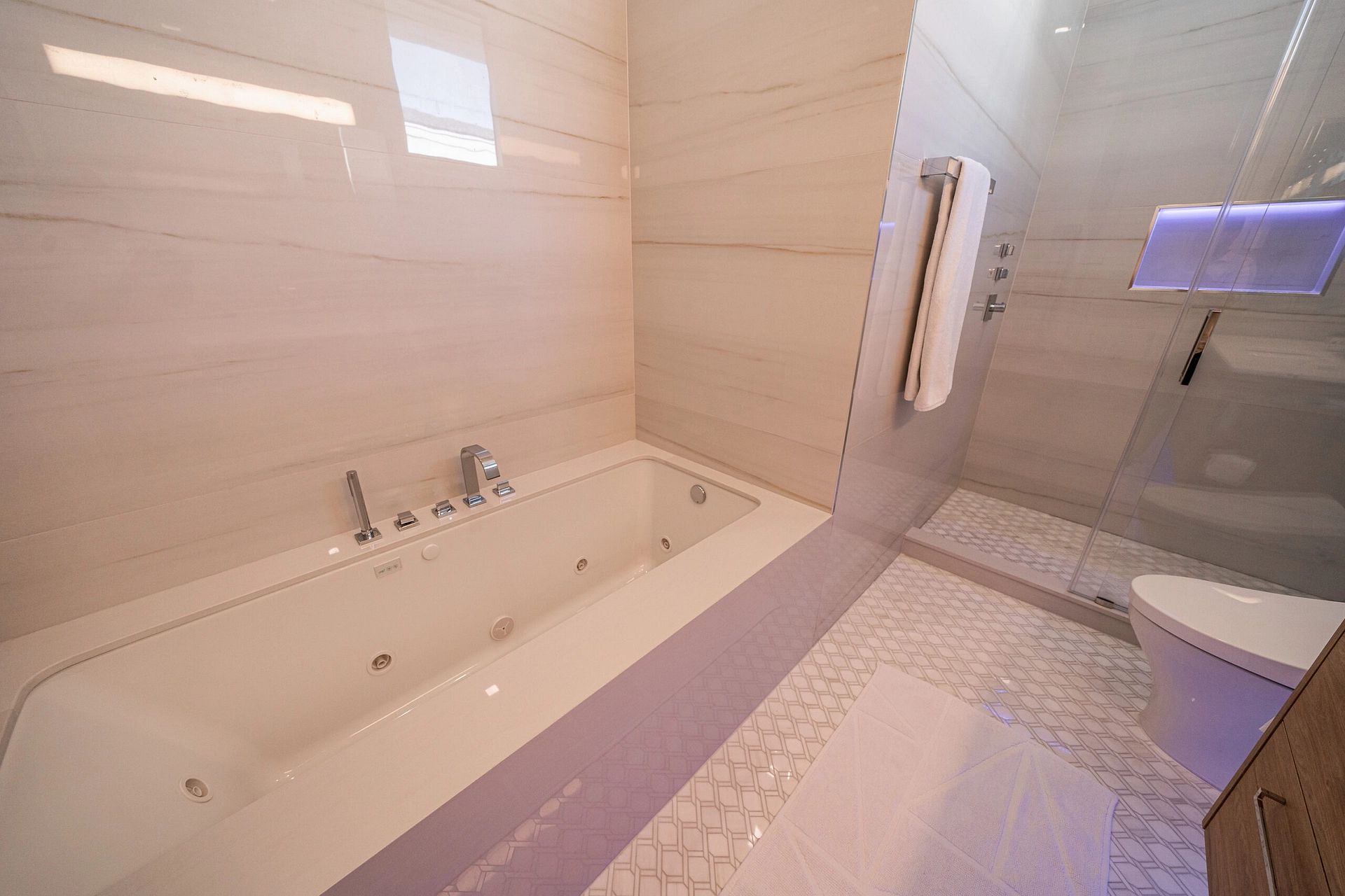 Elevating your living experience further, the residence is seamlessly orchestrated by a comprehensive Crestron system, ensuring effortless control and convenience. Crestron shades add the perfect touch, harmonizing with the grandeur that surrounds.