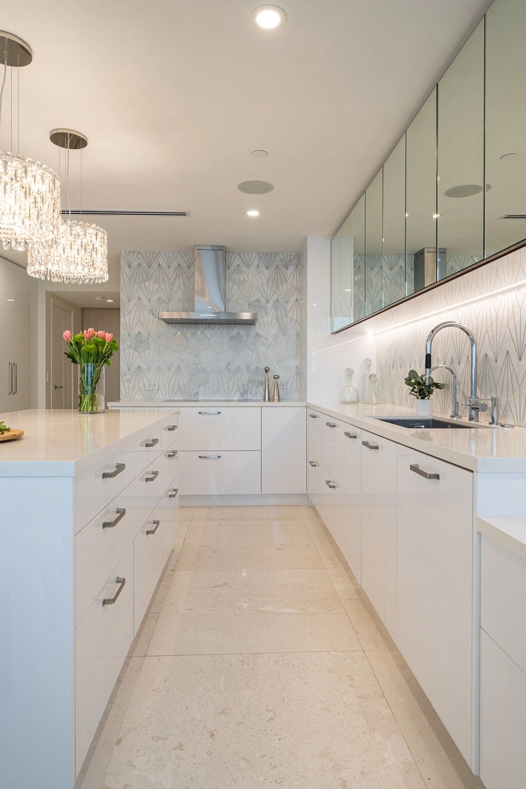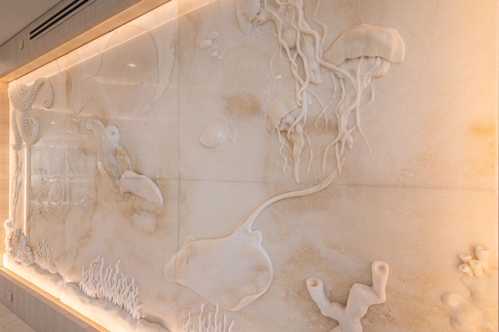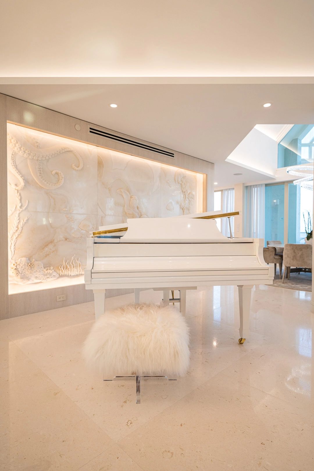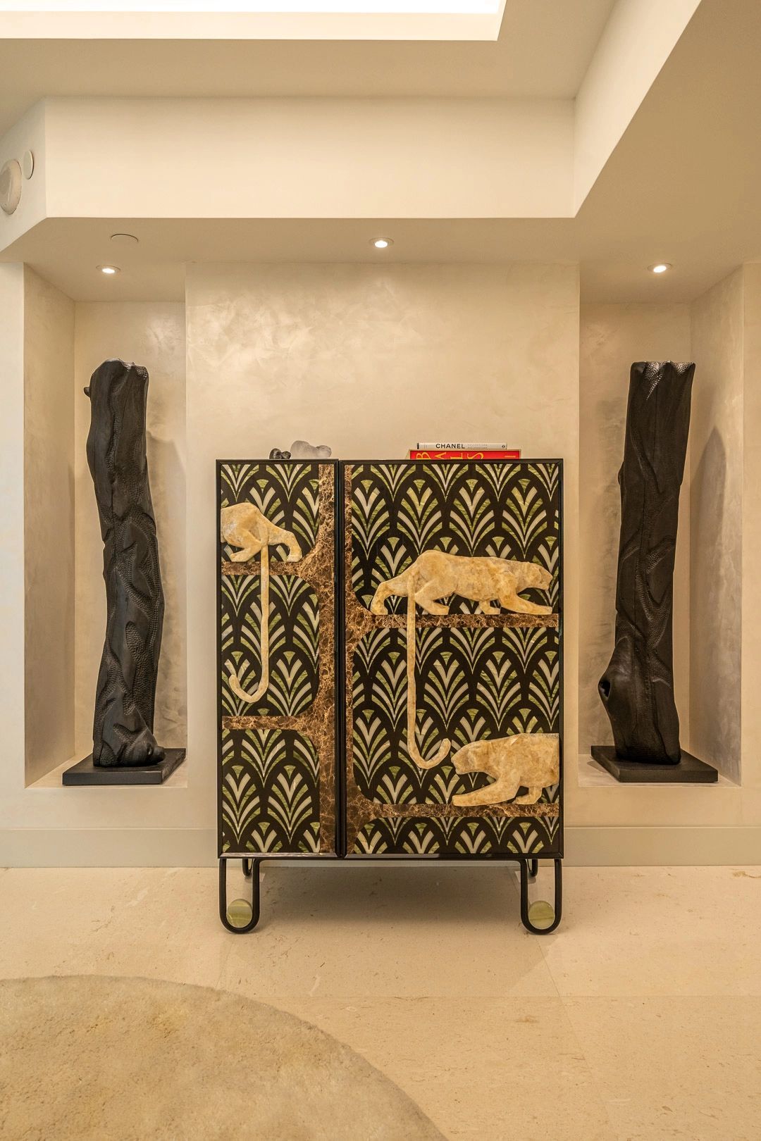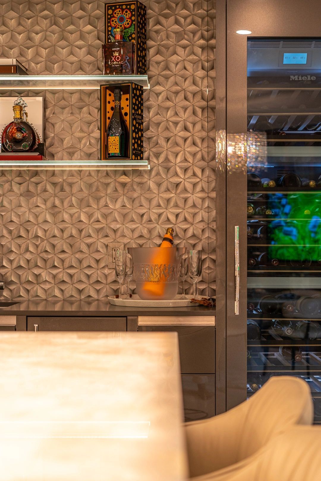 Our custom furniture selection includes pieces from BB Italia, Maxalto, Potocco, and Stark, complemented by cashmere rugs and Swarovski crystal chandeliers. The wine displays are adorned with crystal, and the bar features a collection of Louis XV. With TVs that drop from the ceiling, ocean-facing showers, and countless other exceptional features, this project is a testament to luxury beyond measure."