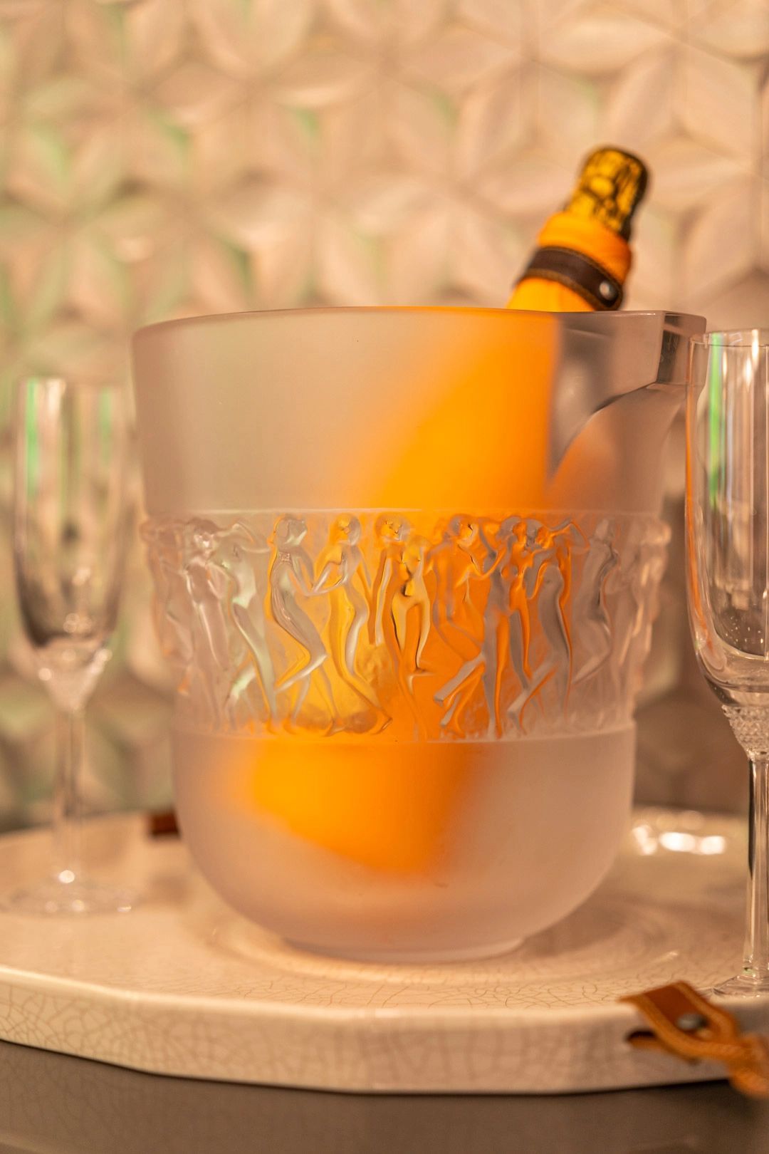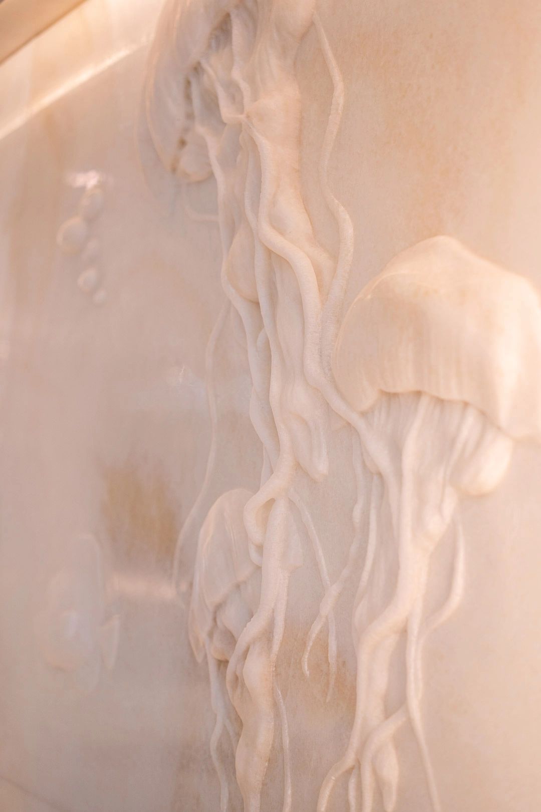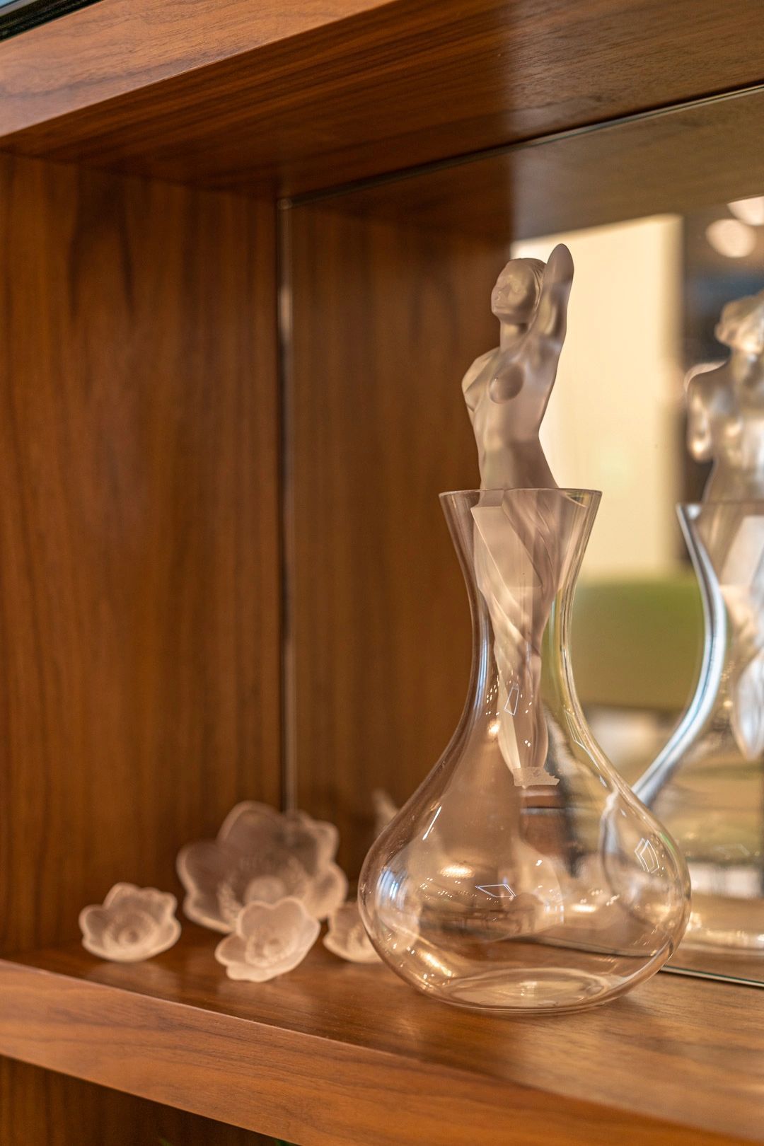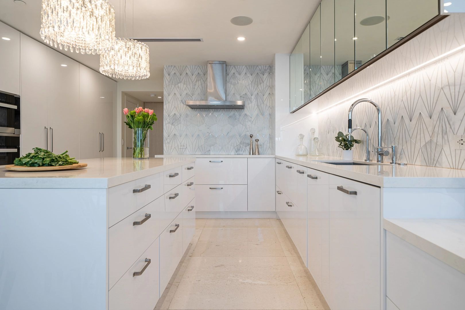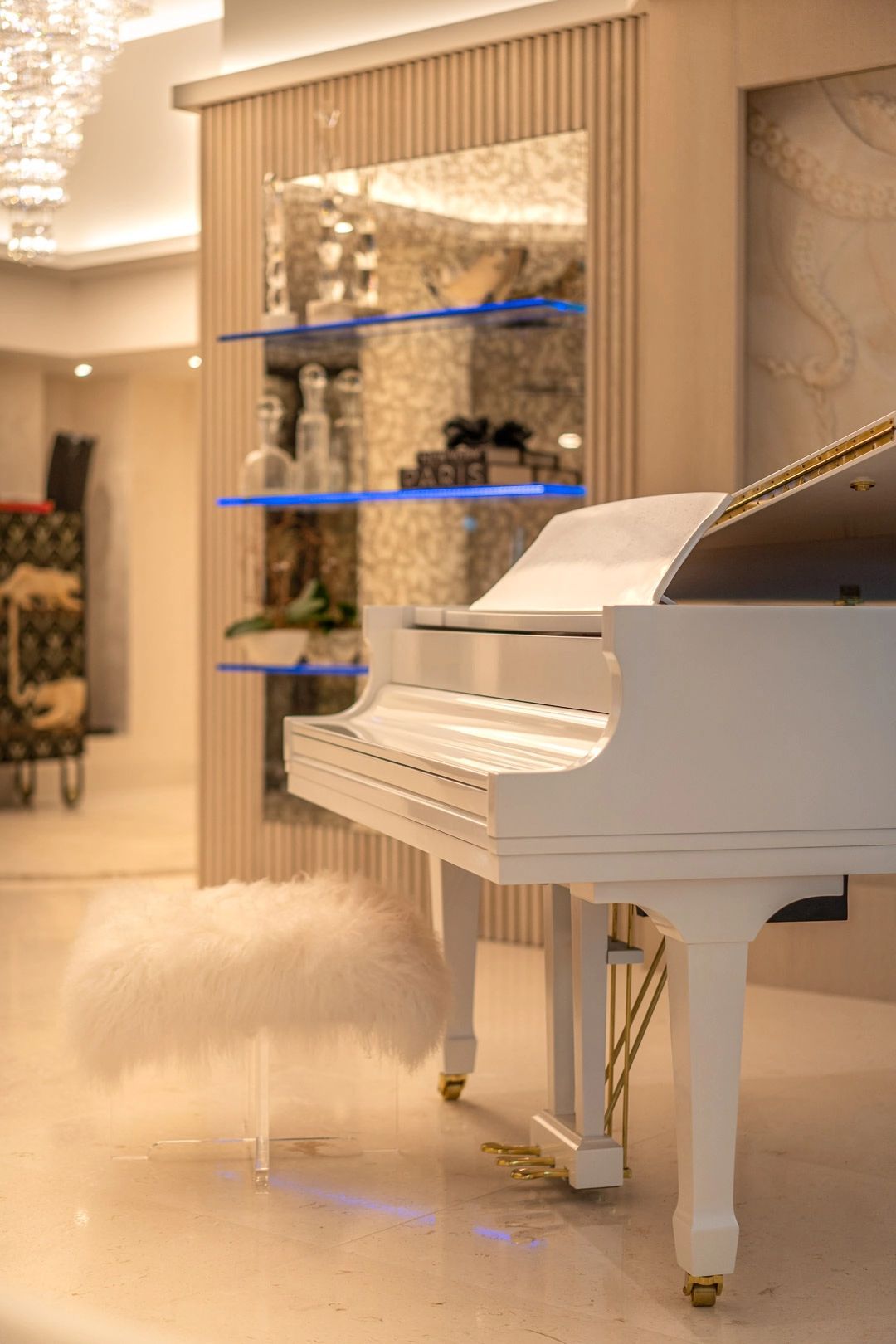 Our custom furniture selection includes pieces from BB Italia, Maxalto, Potocco, and Stark, complemented by cashmere rugs and Swarovski crystal chandeliers. The wine displays are adorned with crystal, and the bar features a collection of Louis XV. With TVs that drop from the ceiling, ocean-facing showers, and countless other exceptional features, this project is a testament to luxury beyond measure."